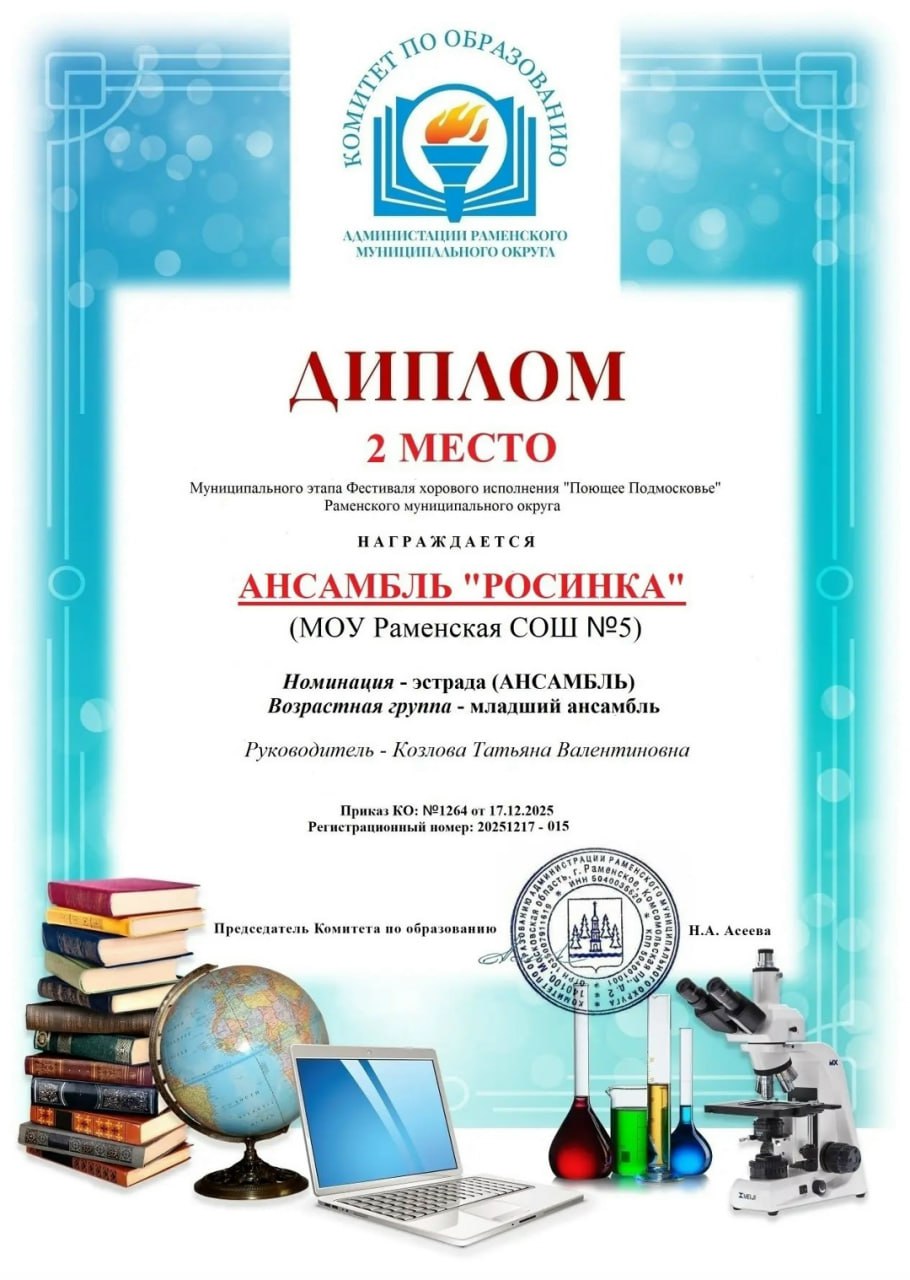Поздравляем хор «Росинка» с заслуженным признанием! Ваши голоса, слившиеся в единую гармонию, покорили и жюри, и зрителей. Гордимся успехами школьников Раменского и желаем коллективу новых творческих побед и вдохновения!