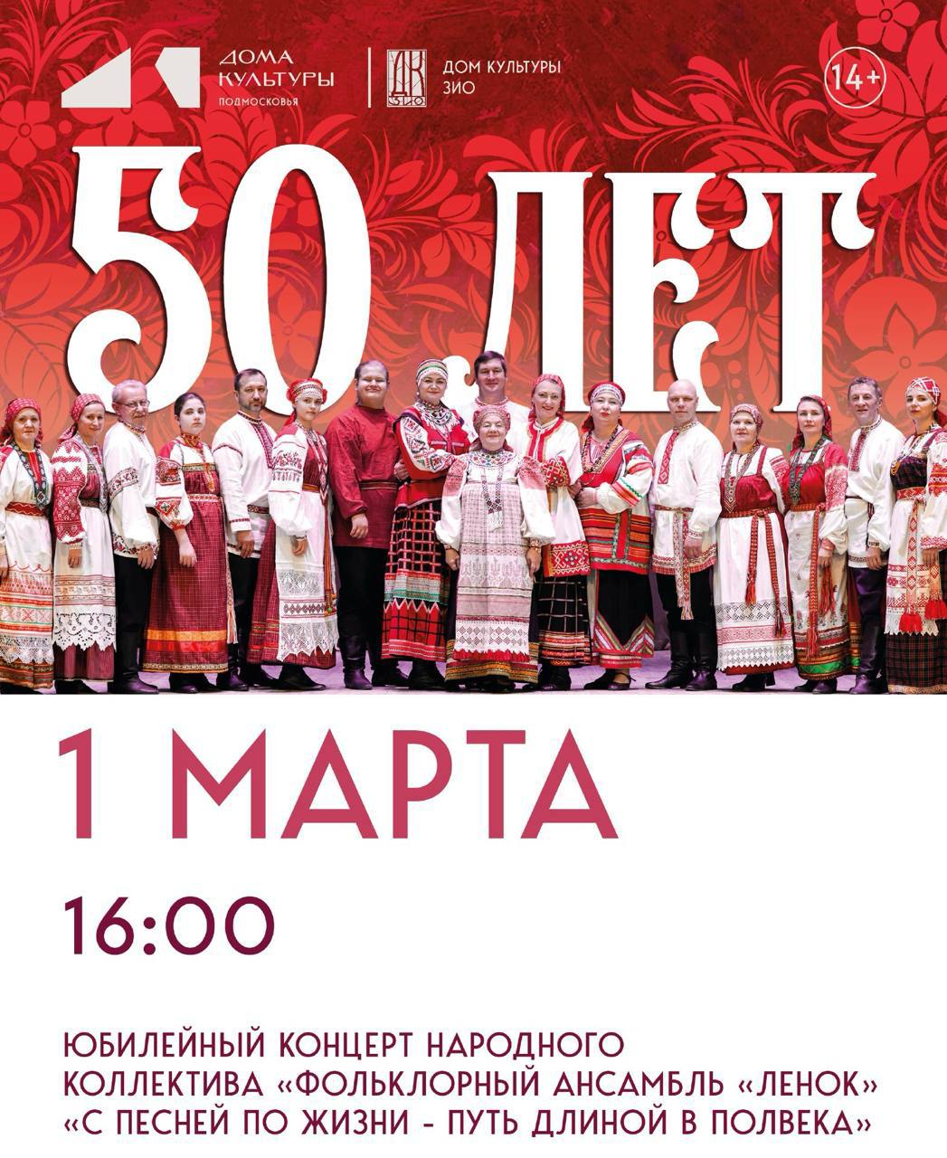 С момента своего основания народный коллектив «Фольклорный ансамбль «Ленок» бережно хранит и оживляет подлинные традиции, работая с этнографическими источниками. А также зрителей ждёт премьера — специальные номера, подготовленные к 50-летию!