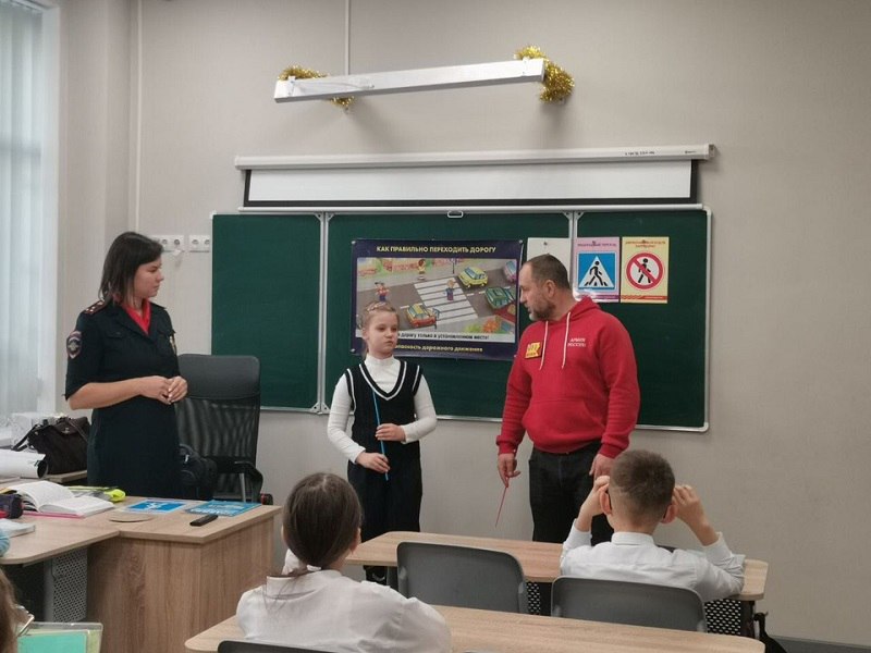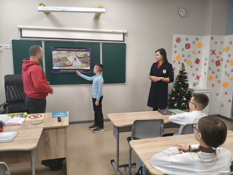 Сотрудница Госавтоинспекции разобрала вместе с ребятами ситуации с дорожными ловушками, которые могут встретиться пешеходам зимой.