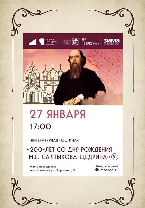 ДК «Березка» Раменского округа приглашает на литературную гостиную к 200-летию М.Е. Салтыкова-Щедрина