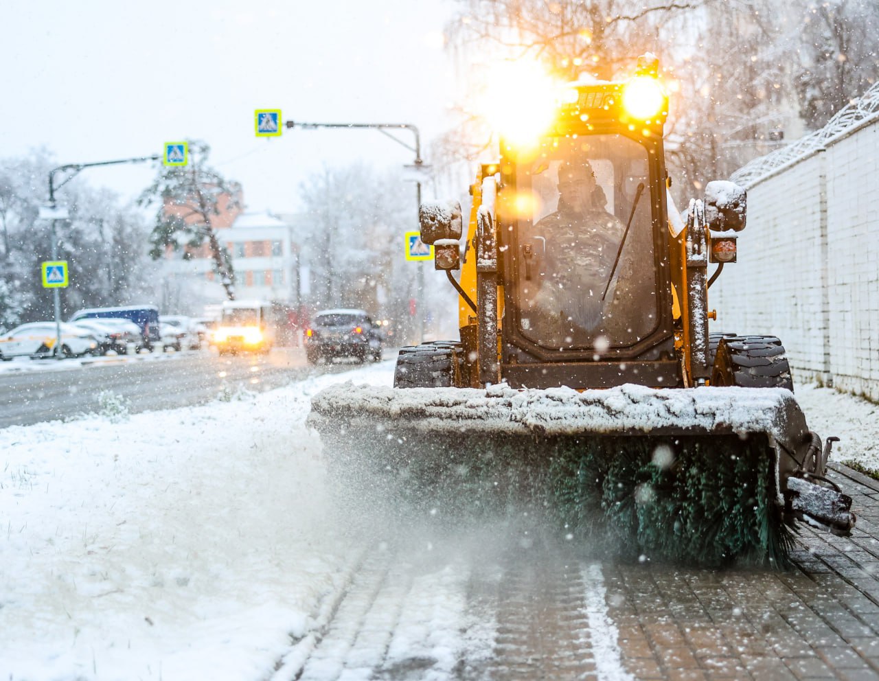 При снегопаде в первую очередь очищают дороги, по которым курсирует общественный транспорт, тротуары, подходы к домам и социальным объектам, проезды к контейнерным площадкам. Для безопасности дороги обрабатывают противогололедными материалами.