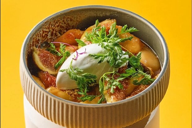 Этот оригинальный десерт не только прекрасно смотрится, но и сочетает в себе разные вкусы — сладость персиков и инжира, холодное мороженое и пряность трав. Рецепт станет незаменимым в любой кулинарной книге!