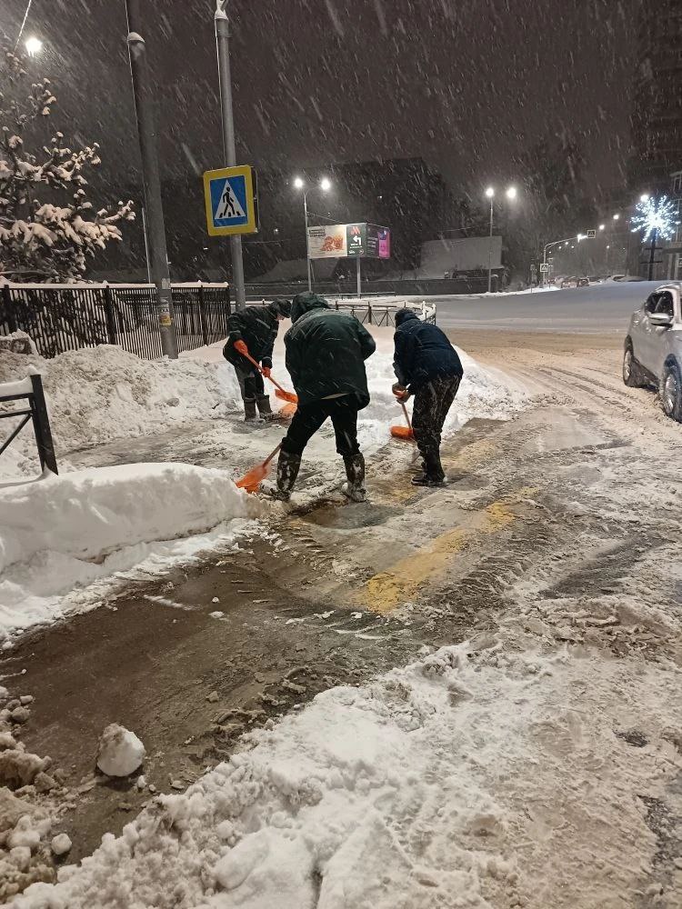 Техника и специалисты трудятся без перерывов, очищая проезжие части, тротуары и придомовые территории. Работа ведётся по всему округу, приоритет - социально значимые объекты, основные дороги и пешеходные маршруты.