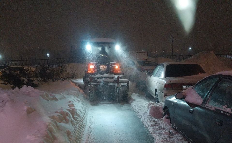 Техника и люди уже приступили к расчистке дорог и дворов округа от снега.