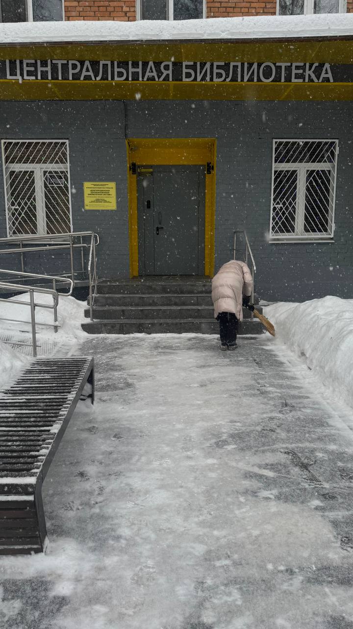 Сотрудники городских учреждений культуры и спорта — библиотек, музея, Комплексного молодёжного центра, Детской школы искусств, ФСК «Салют» и других организаций — дружно вышли на уборку снега вокруг своих зданий. Взяли в руки лопаты и — вперёд, на борьбу с сугробами!