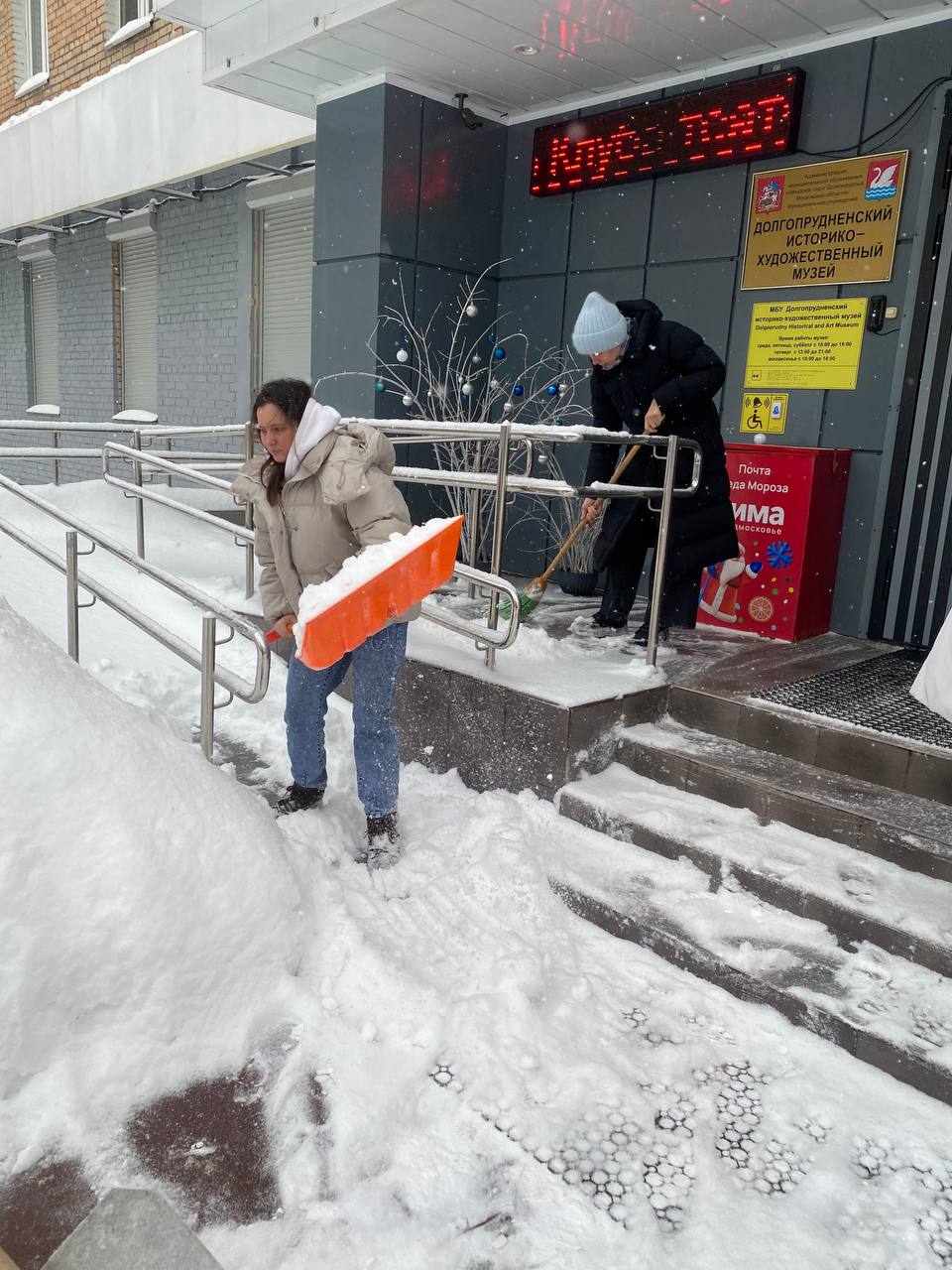 «Мы ценим каждого нашего посетителя и считаем, что дорога к знаниям, истории, спорту и творчеству должна быть открыта в любую погоду, — сообщила начальник Управления культуры, спорта и молодёжной политики администрации Долгопрудного Надежда Белолипская. — Решили вновь оперативно помочь городским службам и своими силами обеспечить уборку и чистоту на прилегающих территориях».