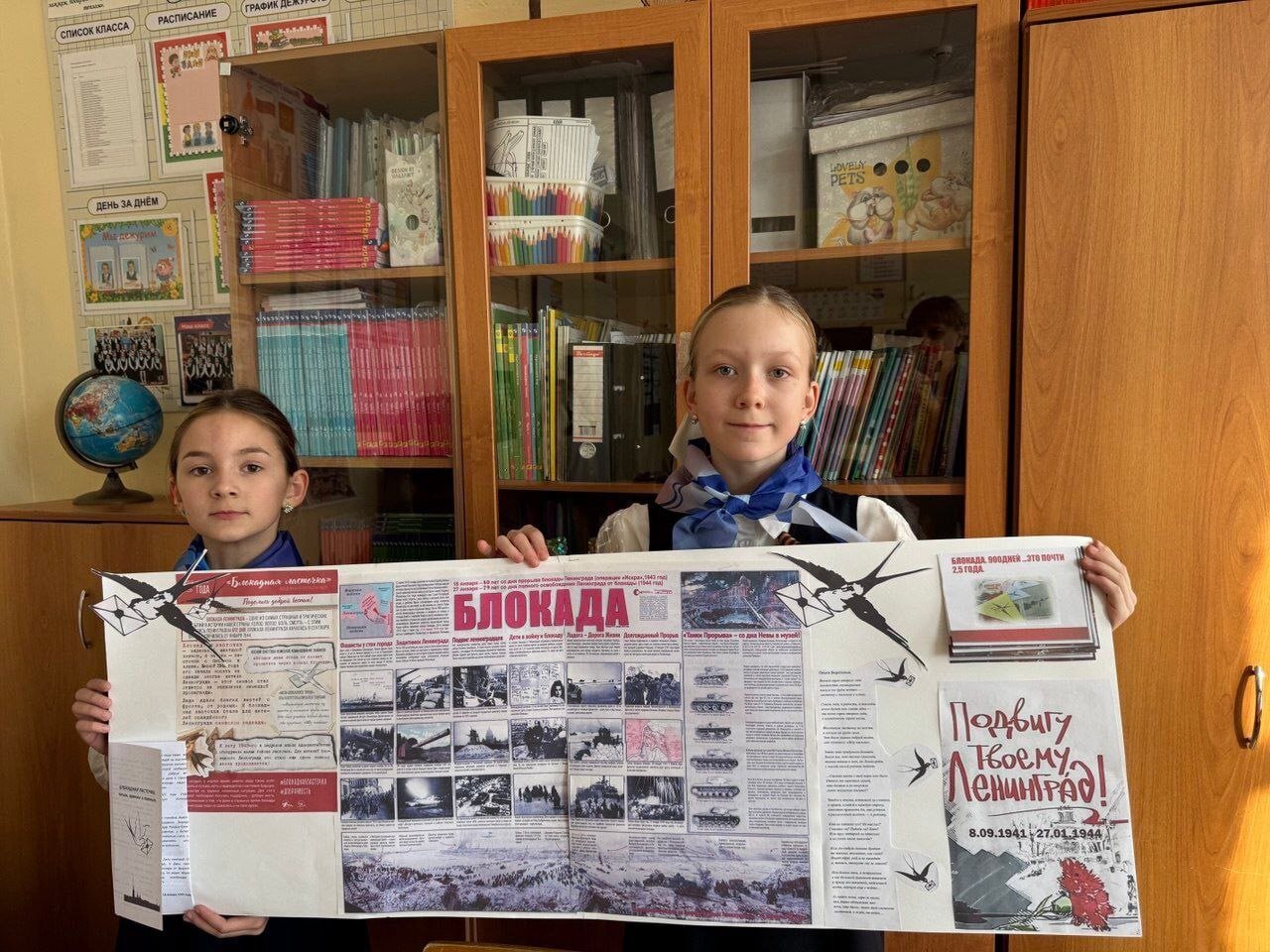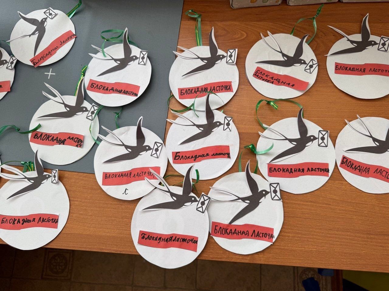А ученики 4 «г» класса к этому Дню воинской славы приняли участие в акции памяти «Блокадная ласточка», которую организовало гражданско-патриотическое движение «Союз юных петербуржцев». Дети узнали о том, что весной 1942 года многие жители осажденного Ленинграда начали носить на одежде жетон с изображением ласточки с письмом в клюве. Этот знак стал ответом на заявления фашистского командования о том, что в город «даже птица не пролетит». Ребята своими руками изготовили жетоны и украсили ими деревья у школы — в память о мужестве ленинградцев.