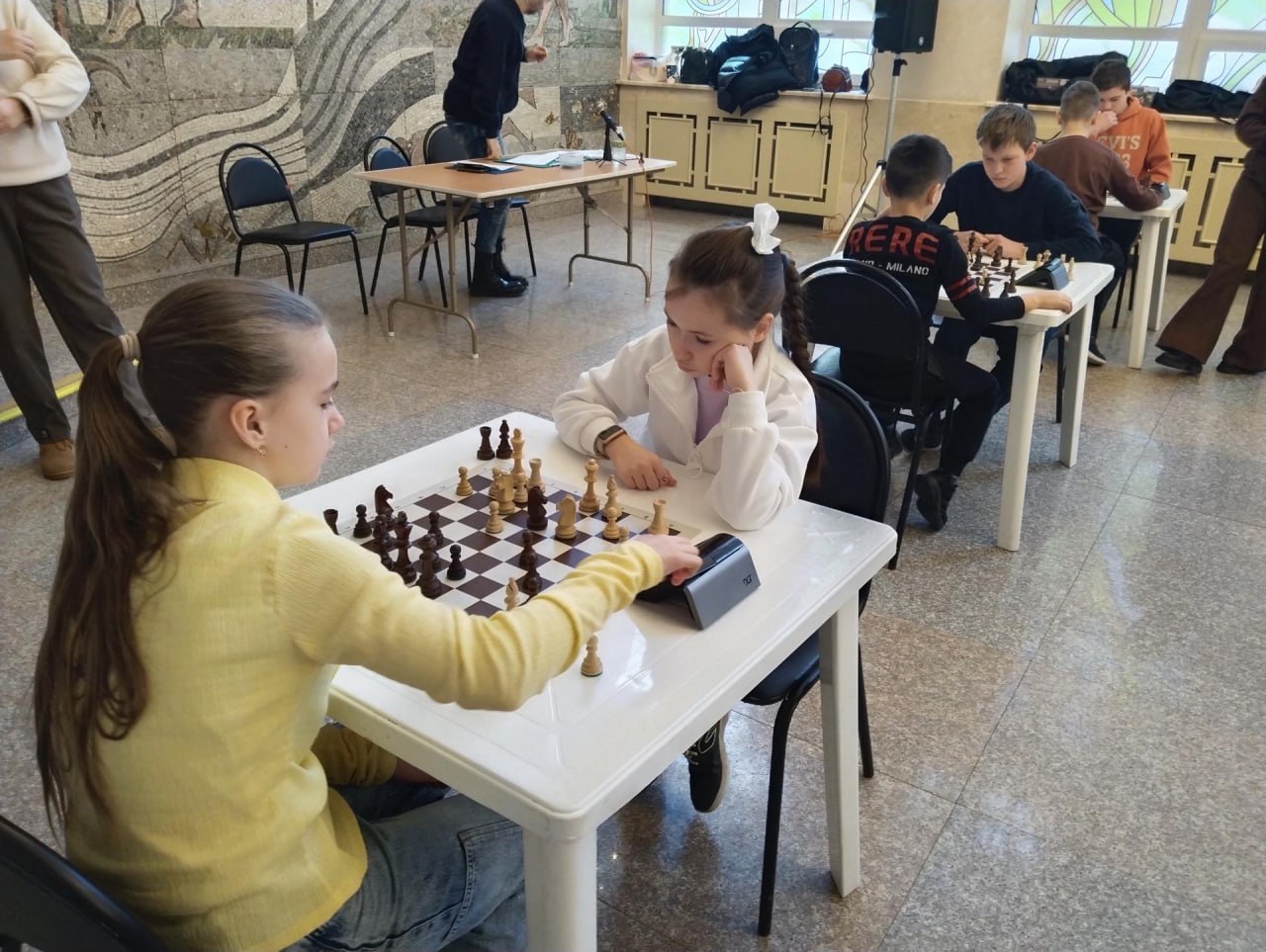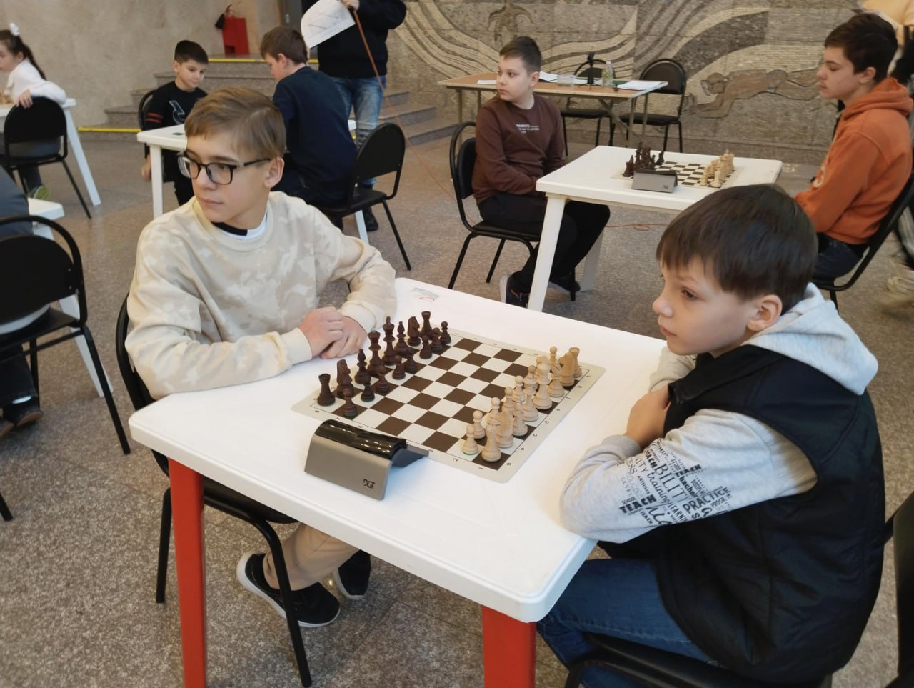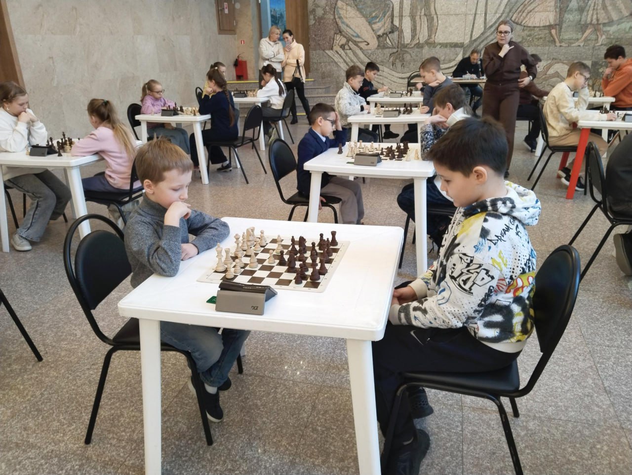 В фойе ДК «Сатурн» спортшкола «Старт» при поддержке Раменской шахматной федерации провела муниципальный этап Всероссийских соревнований «Белая ладья» среди команд общеобразовательных школ. В этот день в борьбу за победу и призовые места вступили ребята 2012 года рождения и моложе, представляющие 2-ю и 3-ю группу школ Раменского муниципального округа.