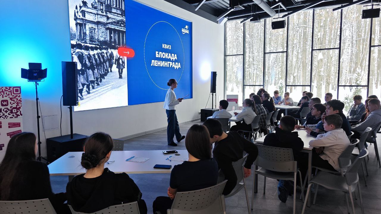 Сегодня, в день, когда страна вспоминает полное освобождение Ленинграда от фашистской блокады, в молодёжном центре «Космос» провели историко-патриотический квиз под названием «Блокада Ленинграда» для учащихся школы №7. Мероприятие было посвящено памятной дате и напомнило о том, через какие тяжёлые испытания прошёл город в годы Великой Отечественной войны.