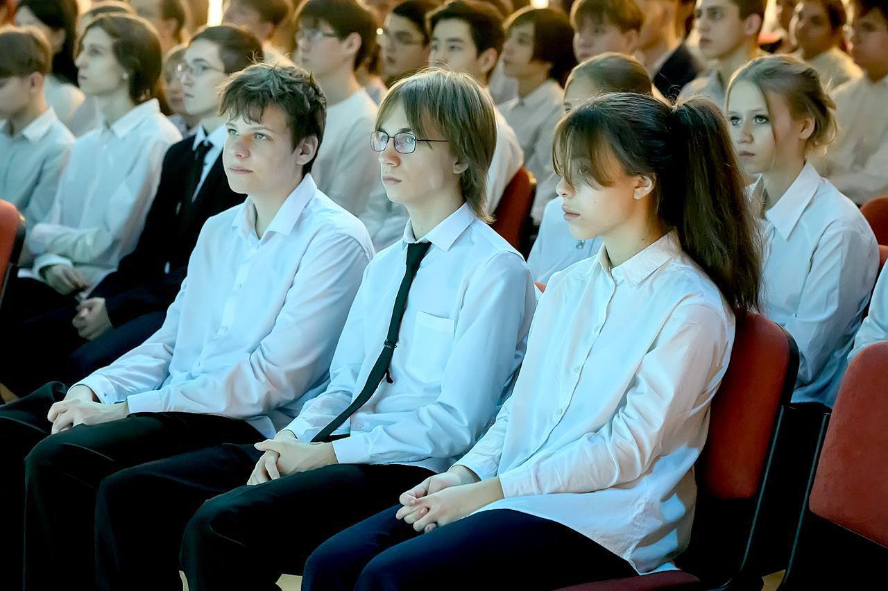 В День полного освобождения Ленинграда от фашистской блокады в гимназии имени Подольских курсантов — как и во всех школах округа — вместо привычного звонка прозвучала Седьмая симфония Дмитрия Шостаковича, известная как «Ленинградская».