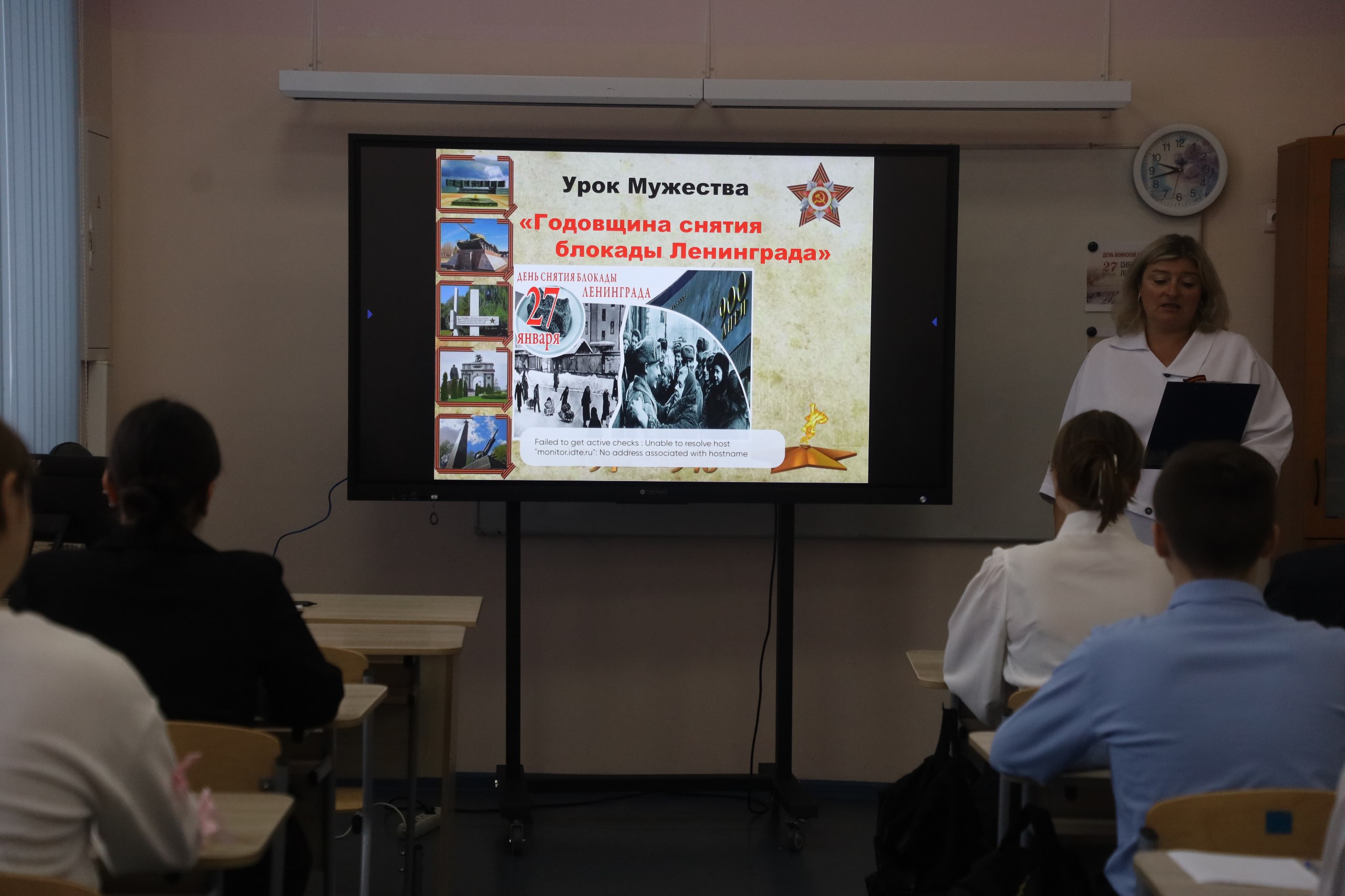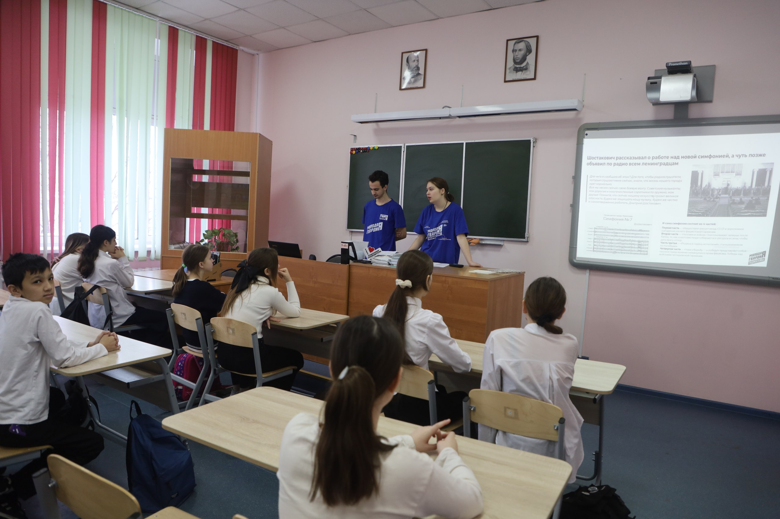 На «Уроках мужества» школьникам рассказали о том, как советские граждане выживали в осаждённом городе 872 дня, 125 граммах хлеба по карточкам, лютых зимах, потерях и надежды на чудо. Одним из символов сопротивления ленинградцев стала 7-я симфония композитора Д.Д. Шостаковича, исполненная в 1942 году после возобновления работы городской филармонии. Это произведение давало силы жить дальше.