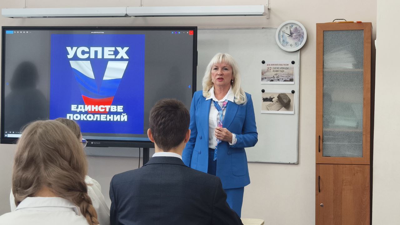 На занятие в школу №5 пришла депутат окружного Совета Надежда Ерёмина. Она призвала ребят помнить историю своей Родины, чтить её и защищать.