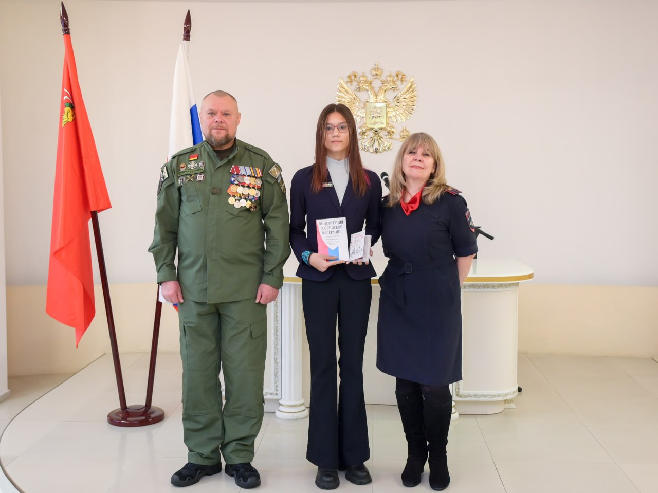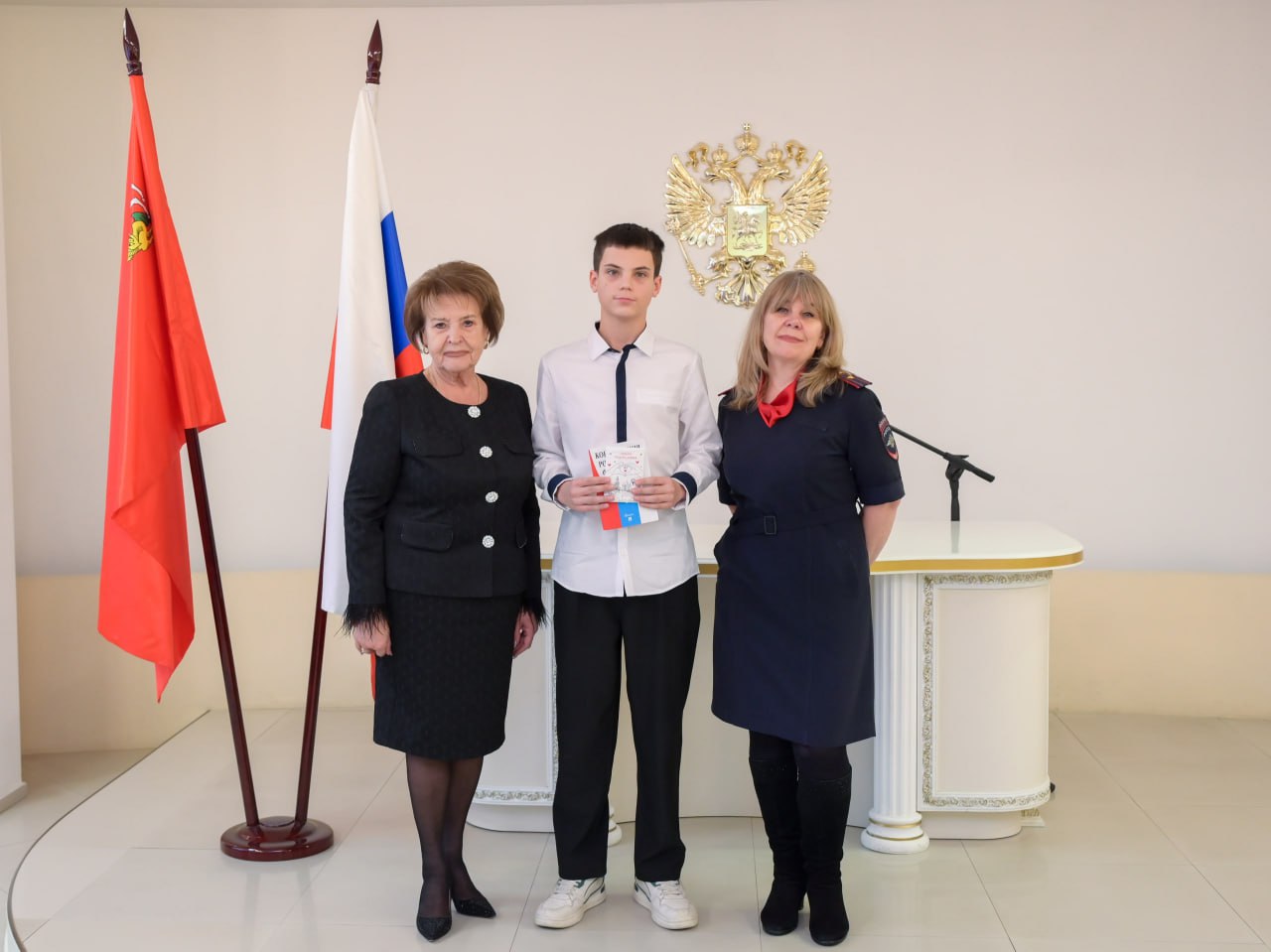 Первый «взрослый» документ из рук заместителя главы Сергиево-Посадского округа Ольги Дударевой и ветерана СВО, участника программы «Время Героев» Андрея Яковлева получили 20 юношей и девушек. В подарок юным гражданам России вручили обложки с графическим изображением Лавры и брошюру «Конституция Российской Федерации». На торжественной церемонии 10 школьникам также вручили дипломы лауреатов именной стипендии Губернатора Московской области в сфере образования.