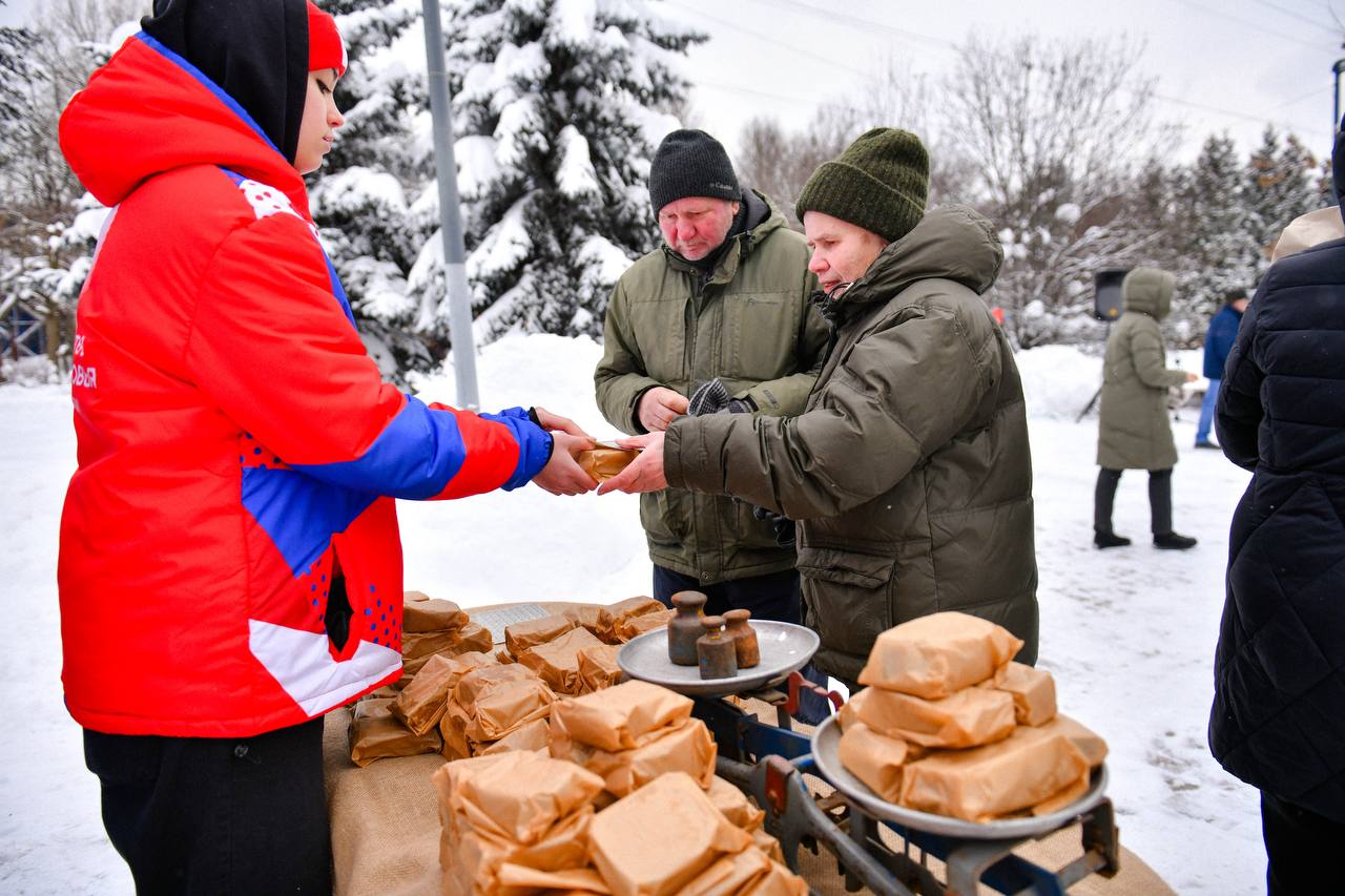 Здесь же провели Всероссийскую акцию «Блокадный хлеб». Волонтёры рассказали участникам о событиях блокады, а также раздали порции хлеба весом 125 граммов — минимальную суточную норму для жителей Ленинграда.