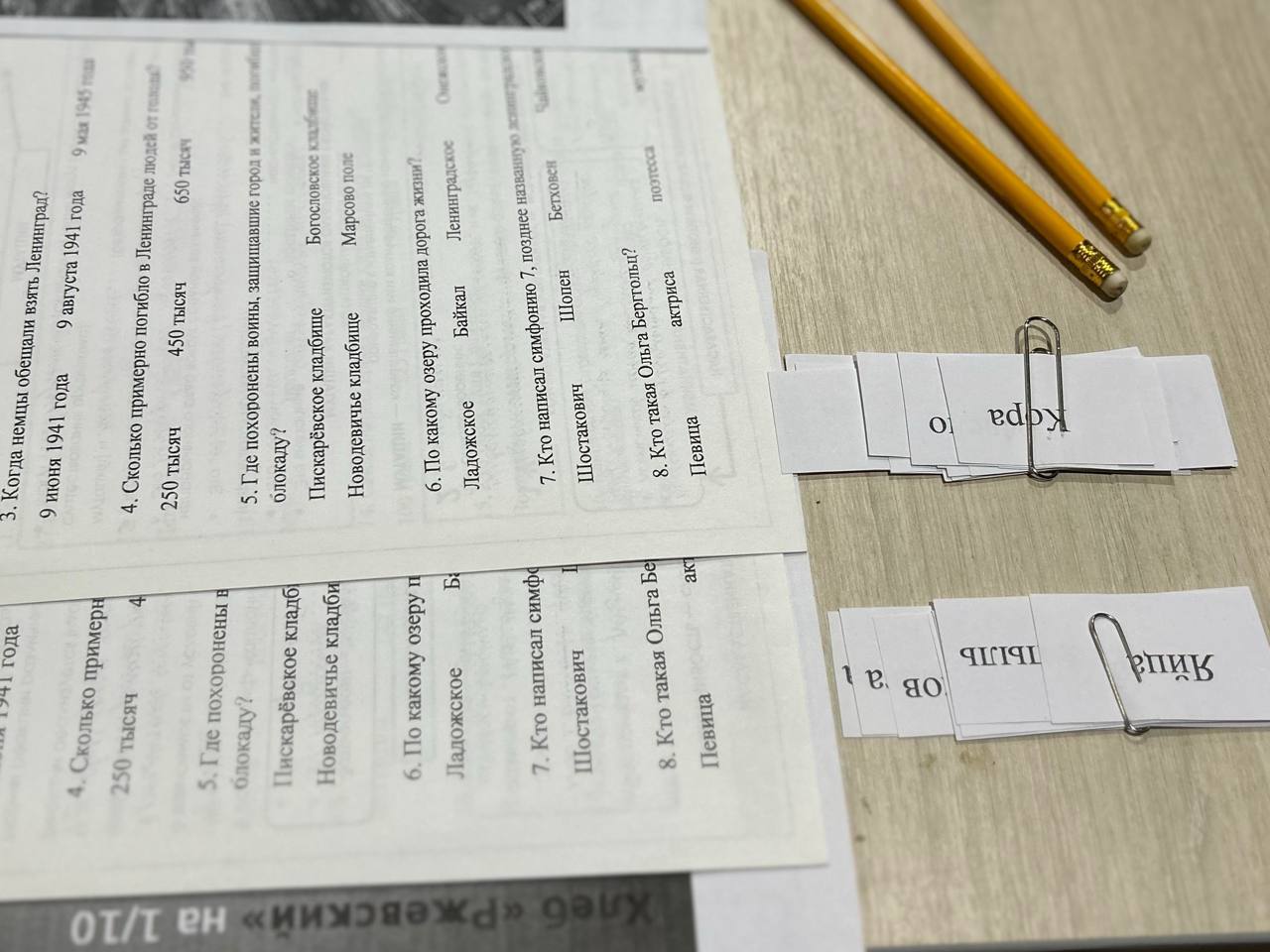 Разделившись на команды, ребята отвечали на вопросы исторической викторины. Под звуки Ленинградской симфонии Дмитрия Шостаковича школьники услышали стихи Ольги Берггольц, вспомнили страницы дневника Тани Савичевой и попытались воссоздать рецепт блокадного хлеба.