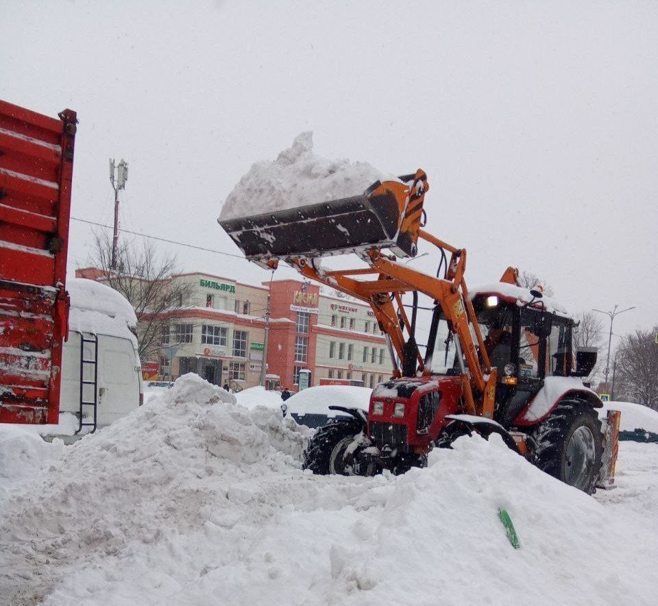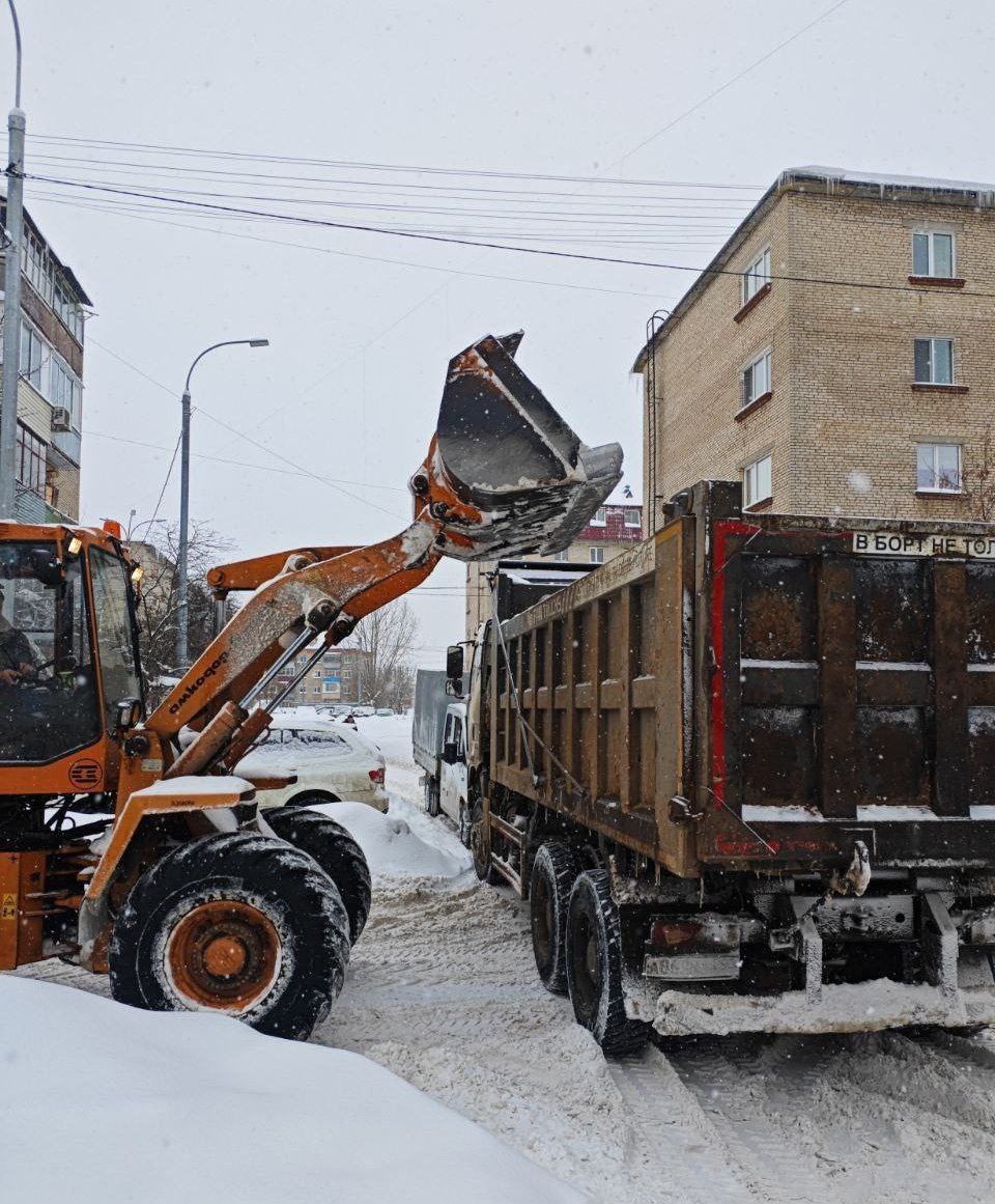 Самосвал и погрузчик вышли на улицы Фирсова, Российскую, Советскую и Весеннюю. 128 единиц техники и 270 специалистов оперативно убирают и вывозят снег.