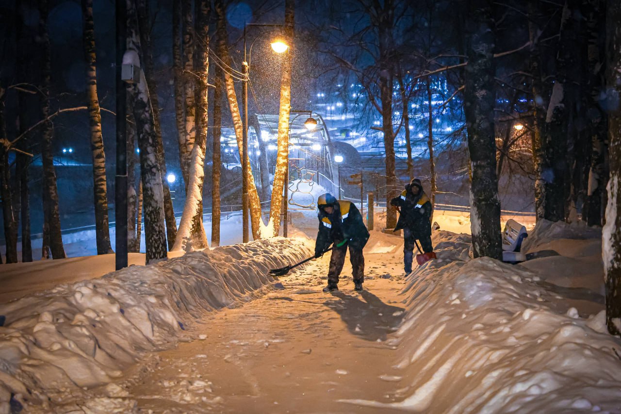 Коммунальные службы продолжают работы по ликвидации последствий сильного снегопада.