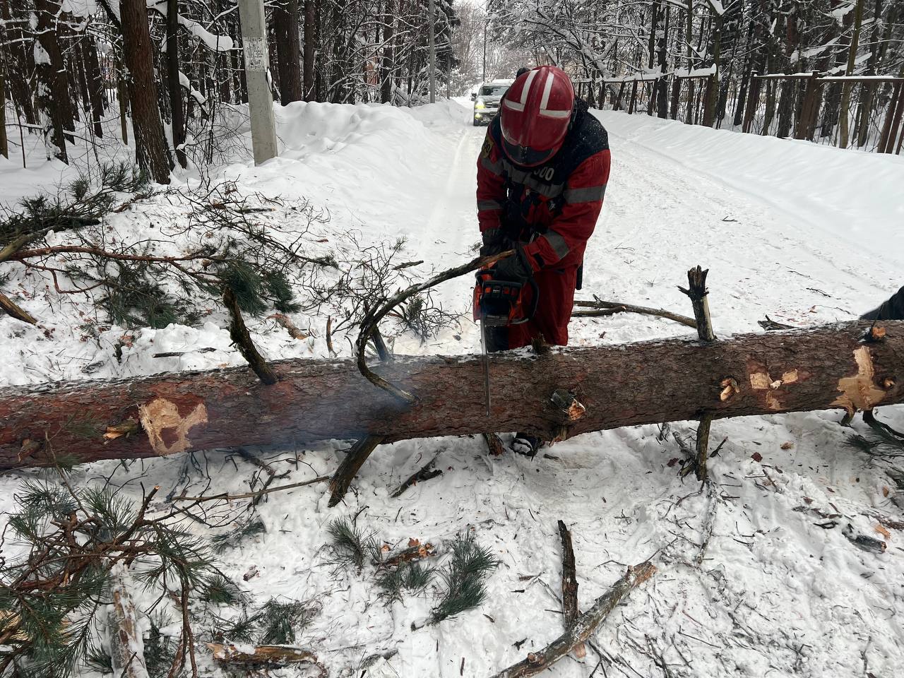 Также в Медвежьих Озёрах на улице Лесная из-за непогоды упало дерево. Специалисты оперативно убрали его и освободили проезд.