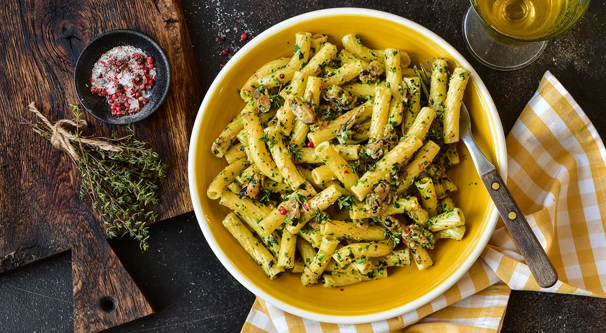 Начинается всё с базовых продуктов, которые можно держать под рукой: паста, мидии, сливки и песто. Время подготовки и приготовления укладываются в обычный вечер, а результат — спокойное ощущение завершённости трапезы.