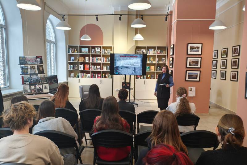 Студенты услышали рассказ о мужестве и стойкости жителей и защитников блокадного города, посмотрели фрагменты из фильма «Города-герои. Ленинград», кадры кинохроники, узнали о своих земляках, сражавшихся за город на Неве, познакомились с книгой воспоминаний воскресенского автора Нины Пырковой «Наша вечная память и боль».