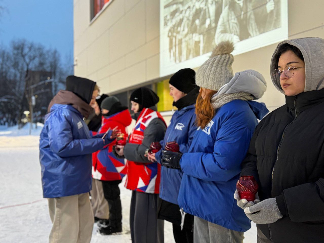 Всем пришедшим реутовчанам молодогвардейцы раздавали 125-граммовые кусочки хлеба, которые напомнили о суточной норме, выделявшейся жителям блокадного Ленинграда. На внешней стене здания транслировались исторические фотографии тех лет под 7-ую «Ленинградскую» симфонию советского композитора Дмитрия Шостаковича.