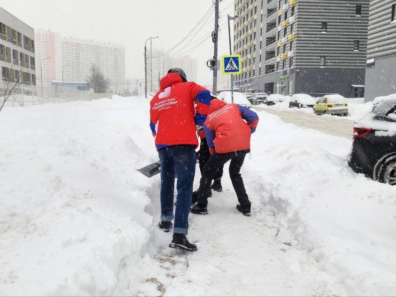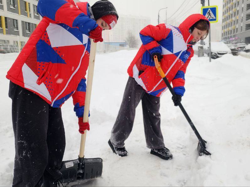 Добровольцы химкинского отделения «Волонтёры Подмосковья» помогают расчищать городские территории от снега и наледи. Ребята привели в порядок территорию поликлиники №5 на улице Молодёжная.