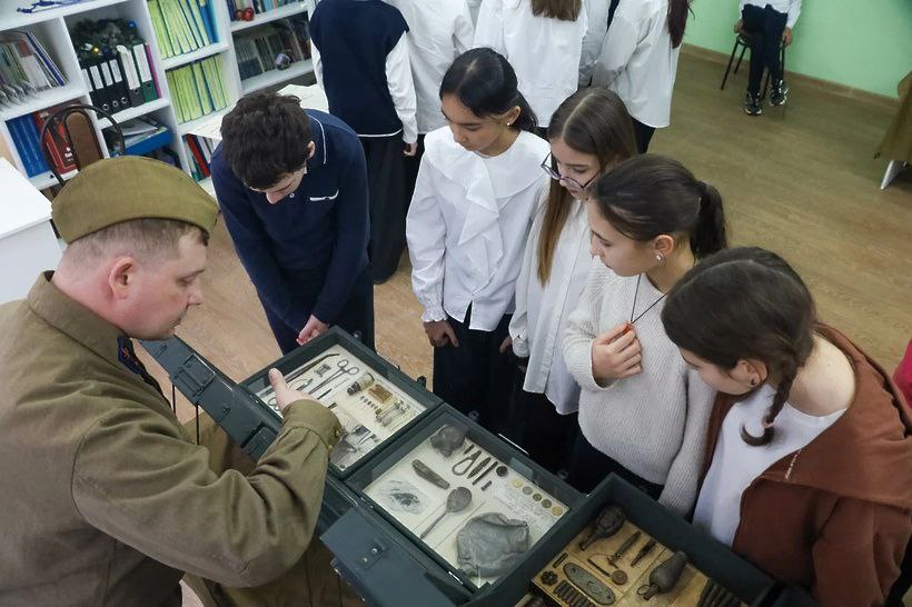 В библиотеке представили уникальную экспозицию с воссозданной фото-музейной зоной «Квартира блокадного Ленинграда». Военно-патриотический клуб «ПО «Витязь» организовал выставку артефактов ВОВ.