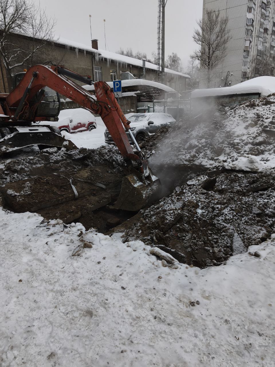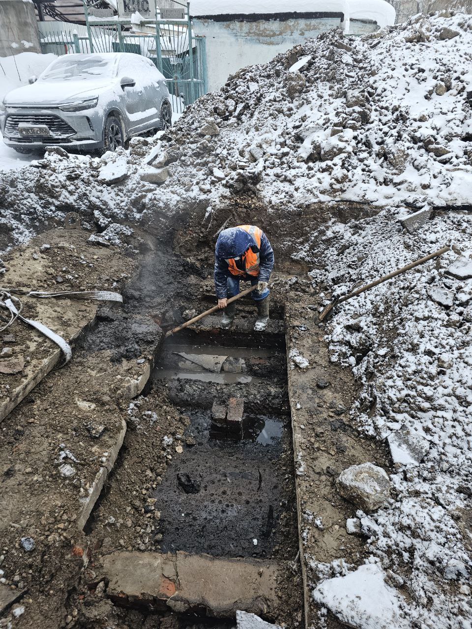 Прямо сейчас в мкрн Водники сотрудники «Инженерных сетей» устраняют аварию на сетях отопления на ул. Якорная, 1.