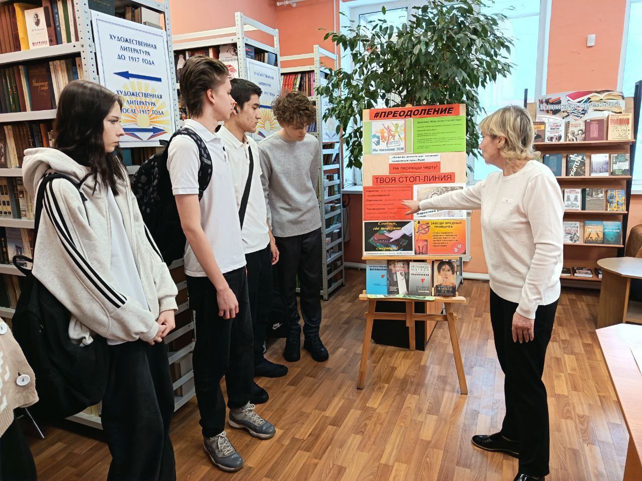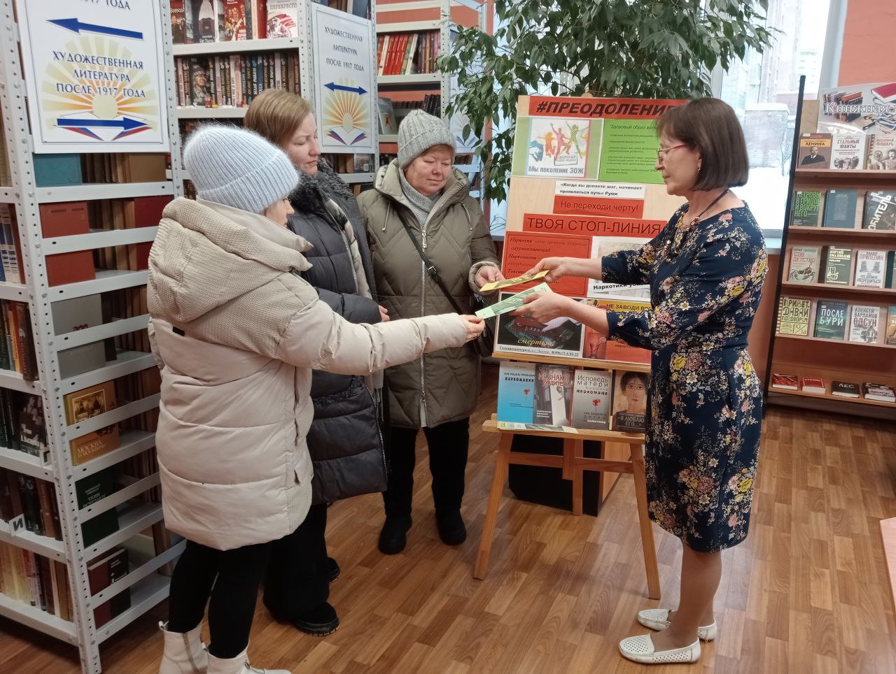 В отделе взрослого абонемента для посетителей был оформлен информационный стенд «#Преодоление», на котором размещались материалы, отражающие негативные последствия вредных привычек (наркомании, потребление табака, алкогольных напитков). Посетители с большим вниманием отнеслись к лекции сотрудника библиотеки, познакомились с литературой, представленной на экспозиции. Более полная информация предлагалась в информационно-рекомендательном буклете, разработанном в Детской библиотеке, «Скажи наркотикам НЕТ!».