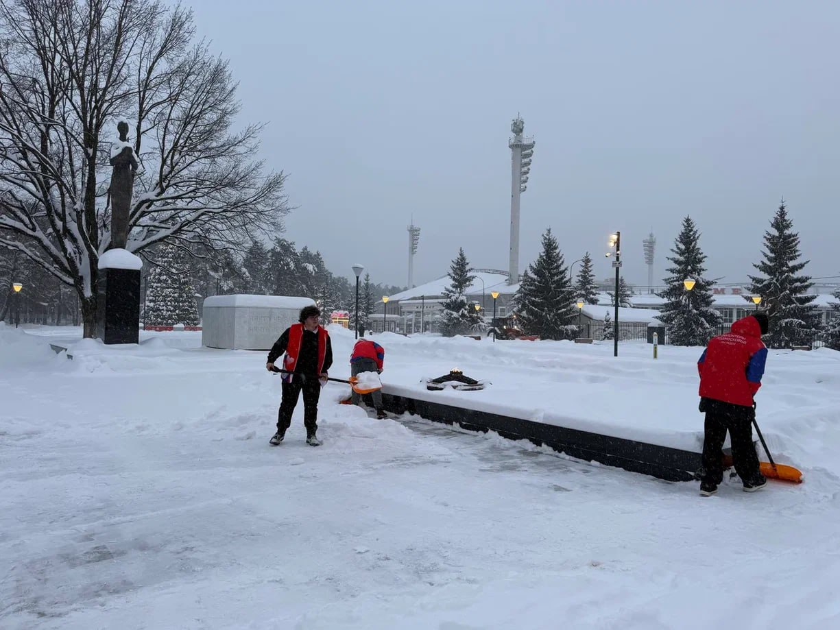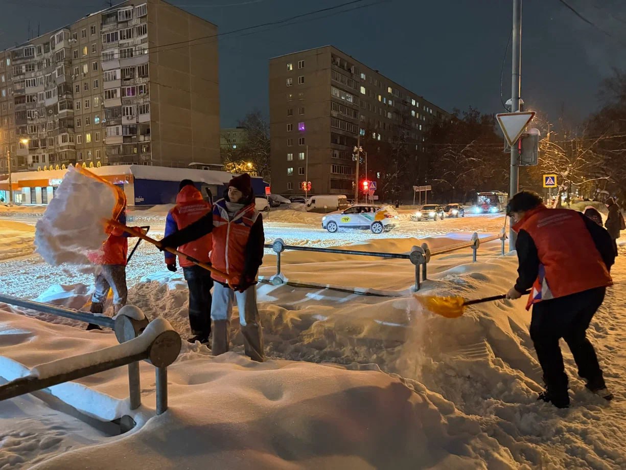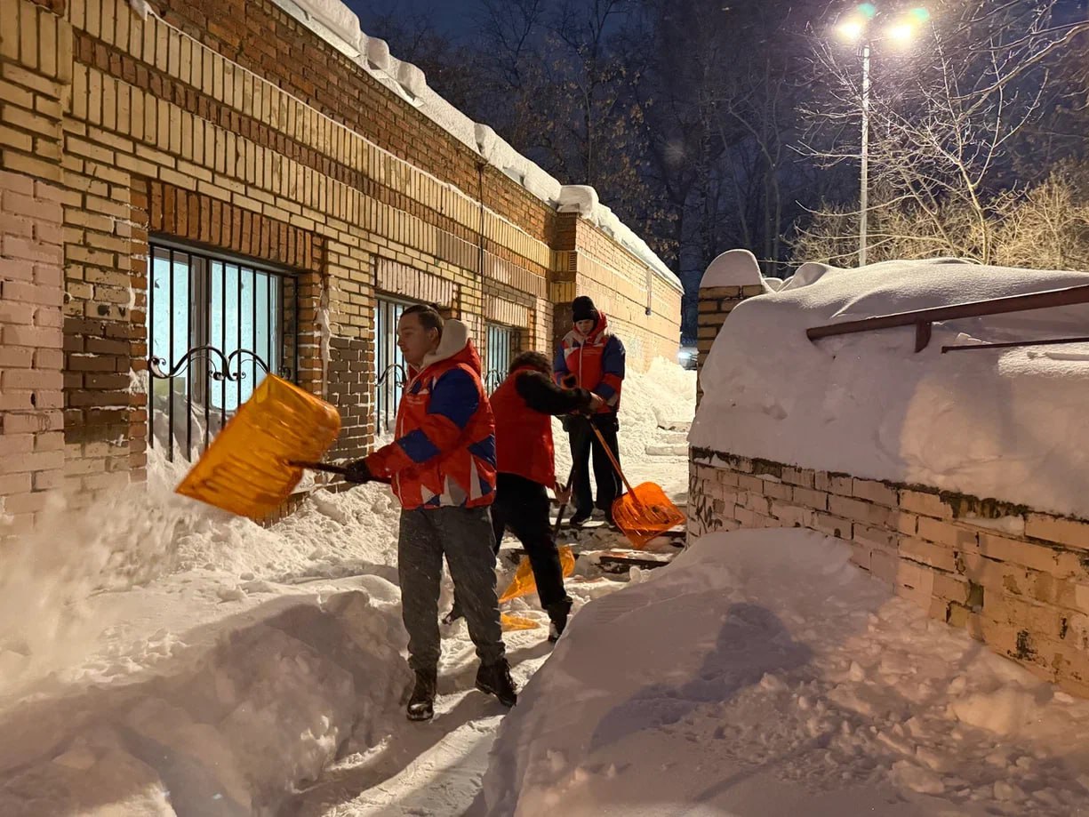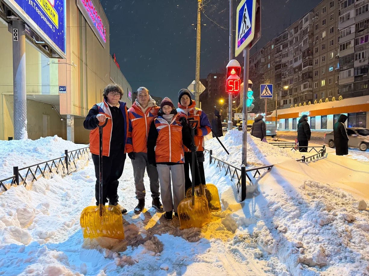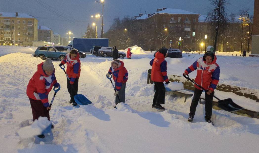 Молодые жители не остаются в стороне и вместе с работниками коммунальных служб участвуют в ликвидации последствий снегопадов.