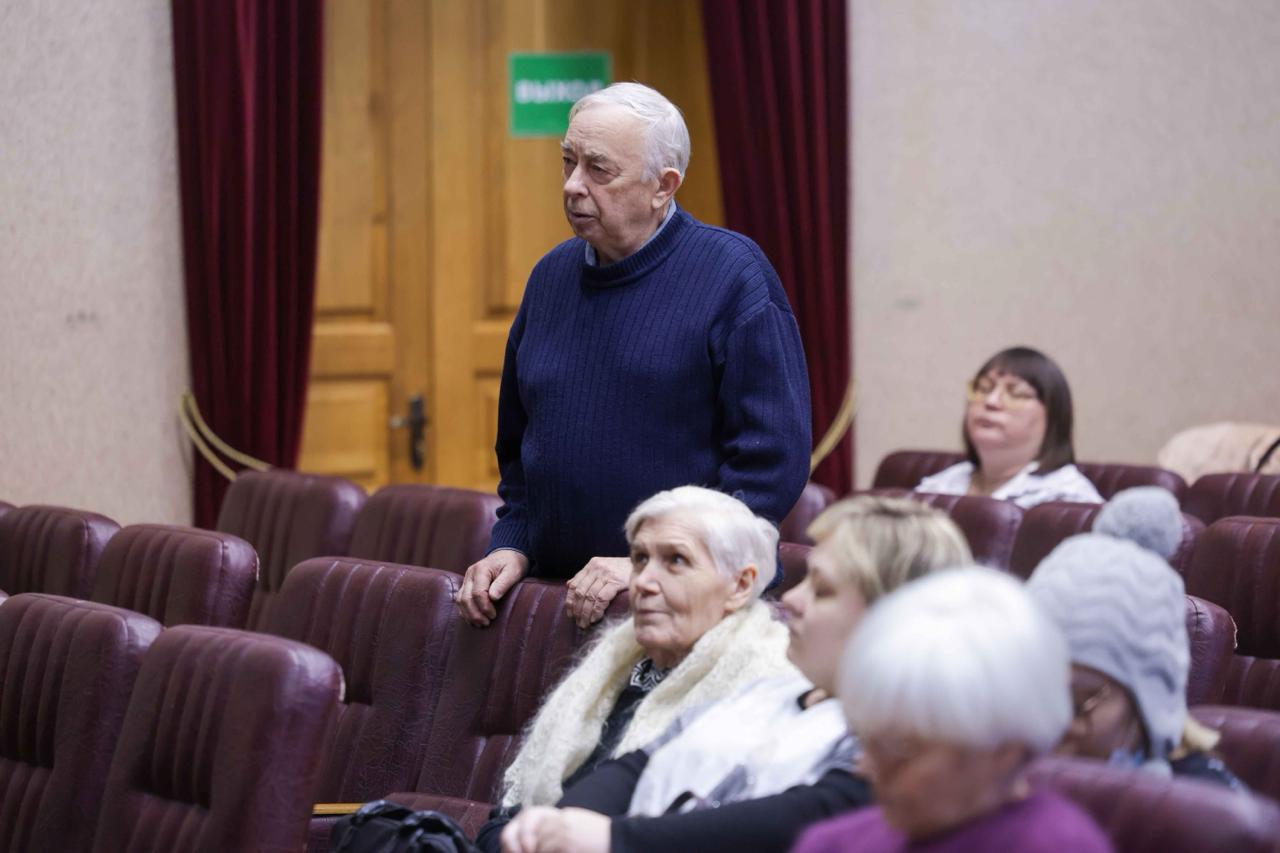 80-летний житель Климовска Михаил Иванович пришёл на встречу задать вопрос о льготных лекарствах. И поблагодарить врачей и медсестёр дневного стационара ОСП № 6 Подольской областной клинической больницы.
