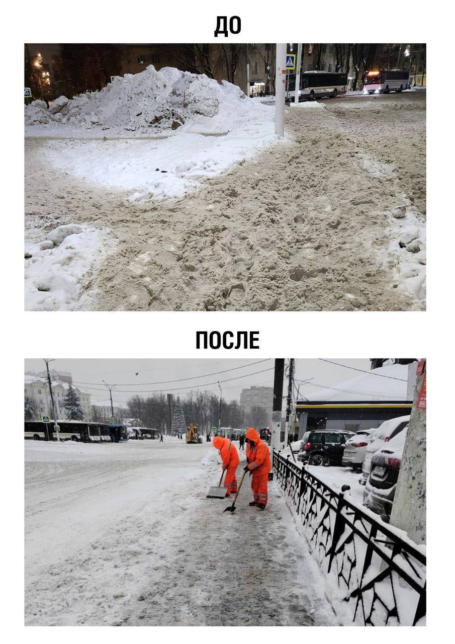 Снег продолжает идти, и даже оперативно убранные участки за ночь могут снова оказаться занесёнными. Коммунальные службы ведут работы непрерывно. После ночных метелей к утру ключевые участки оперативно расчищают.