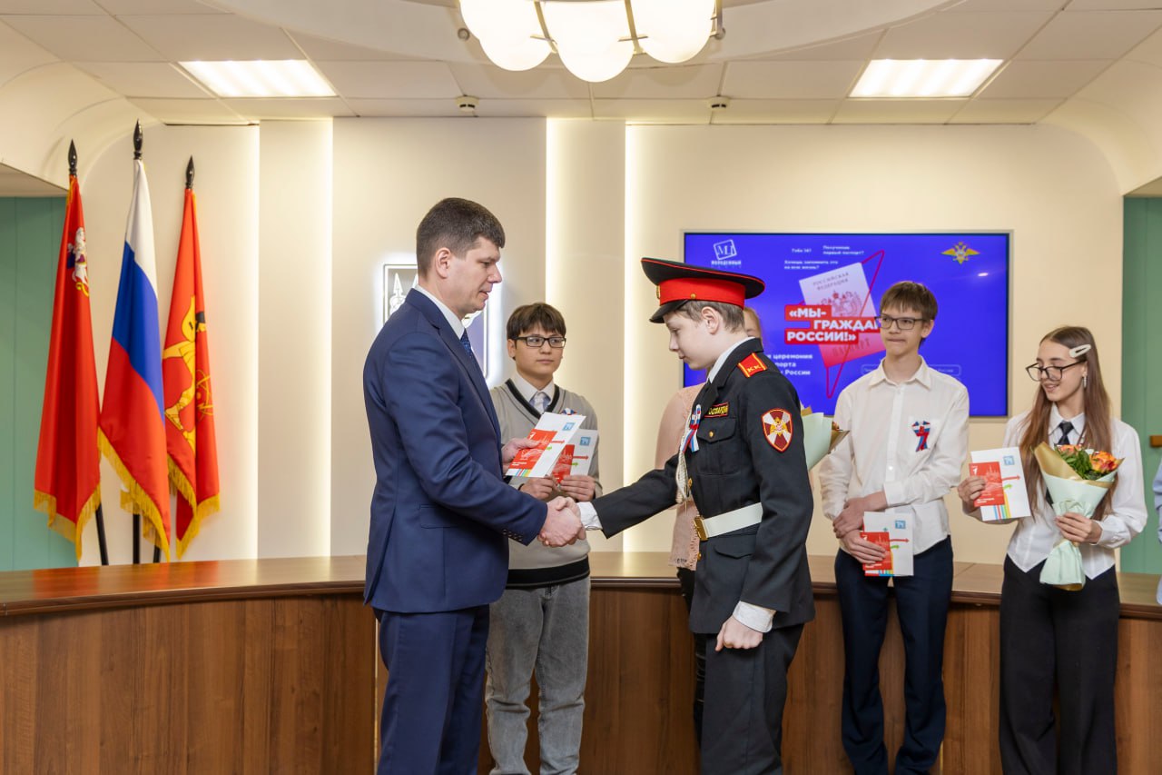 Восемь юных жителей нашего городского округа получили свой первый главный документ из рук Главы г. о. Электросталь Филиппа Ефанова. Филипп Александрович поздравил ребят с таким значимым событием в жизни каждого гражданина, напомнил о появившихся у них возможностях и ответственности.