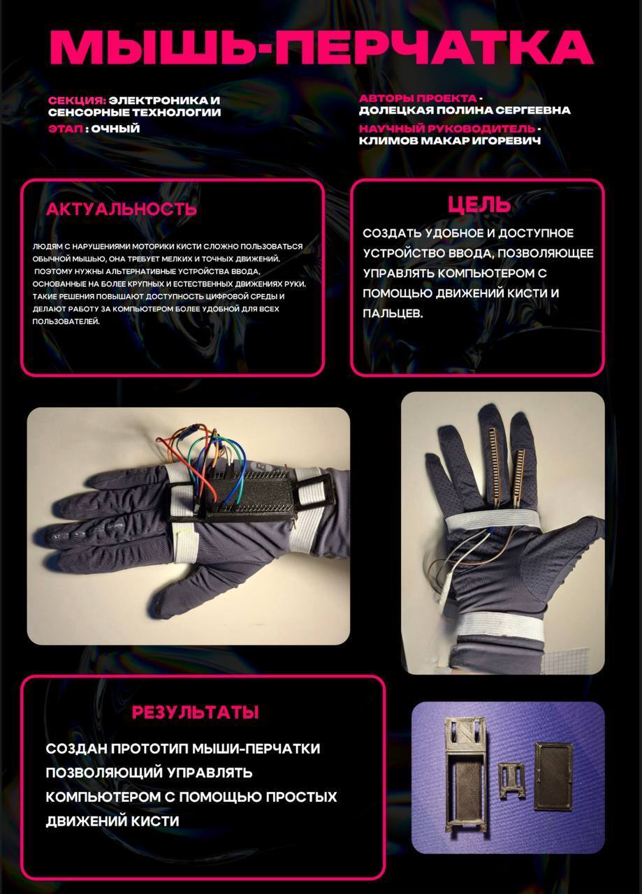 Полина создала специальное устройство для людей с ограниченными возможностями, которое позволяет управлять компьютером с помощью естественных движений руки и пальцев. Этот изобретение повышает доступность цифровой среды для людей с нарушениями моторики рук.