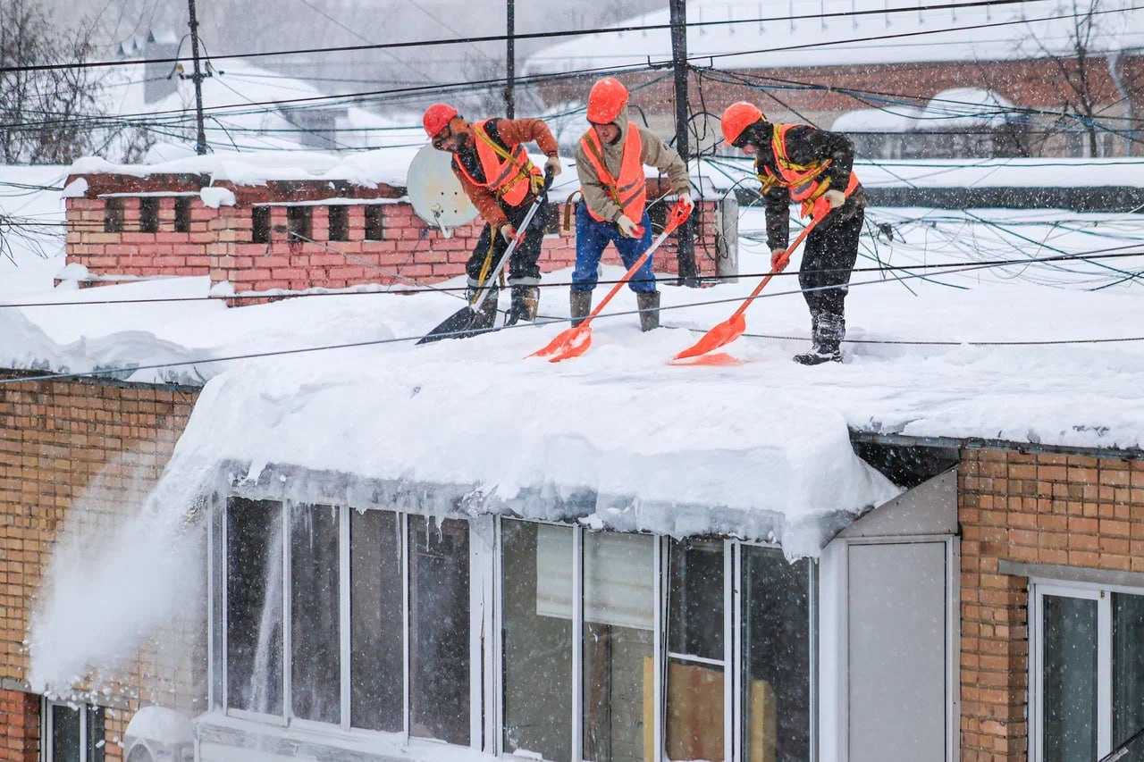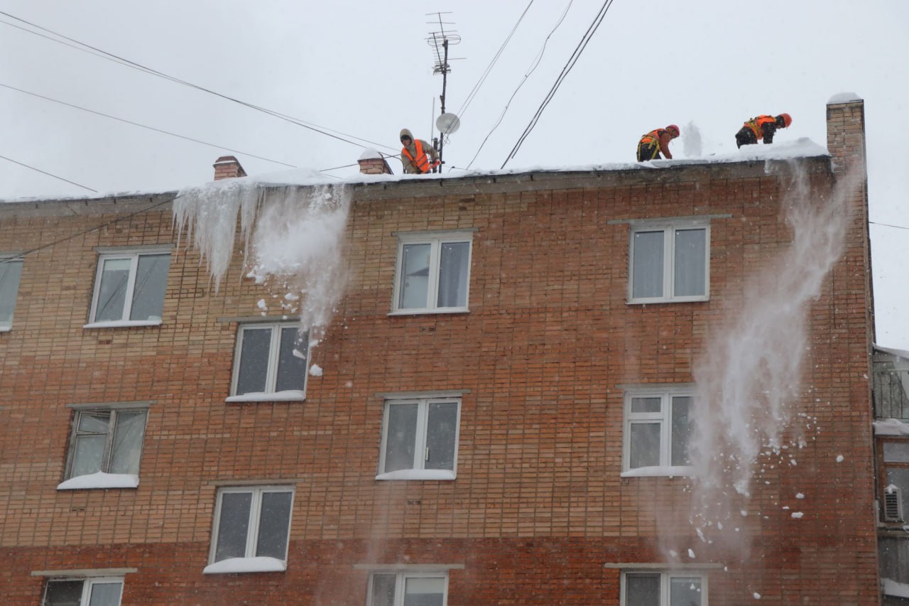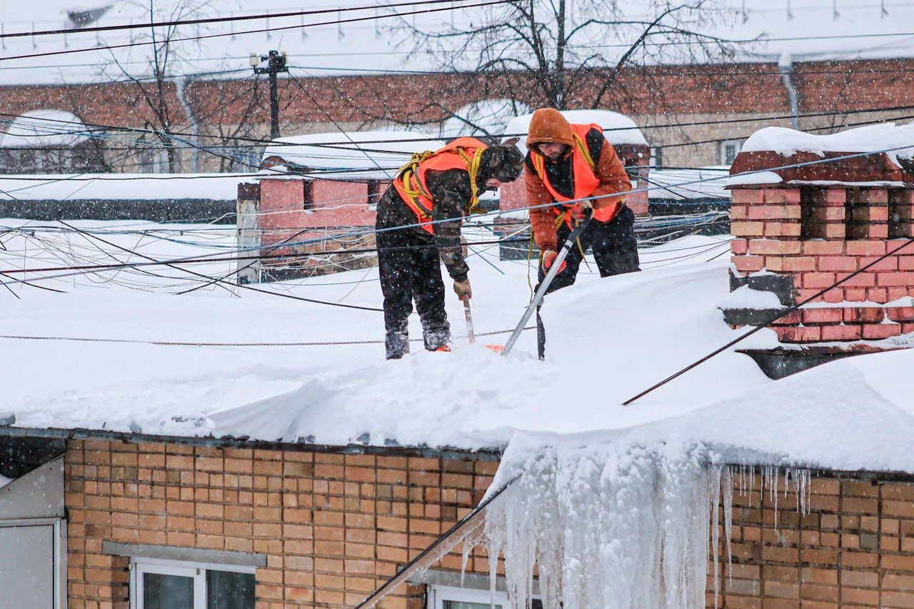В зимний период особое внимание уделяется состоянию крыш многоквартирных домов. После первых обильных снегопадов были проведены масштабные работы по уборке кровли от снега и наледи. Новый циклон снова заставил сотрудников коммунальных служб подниматься на крыши.
