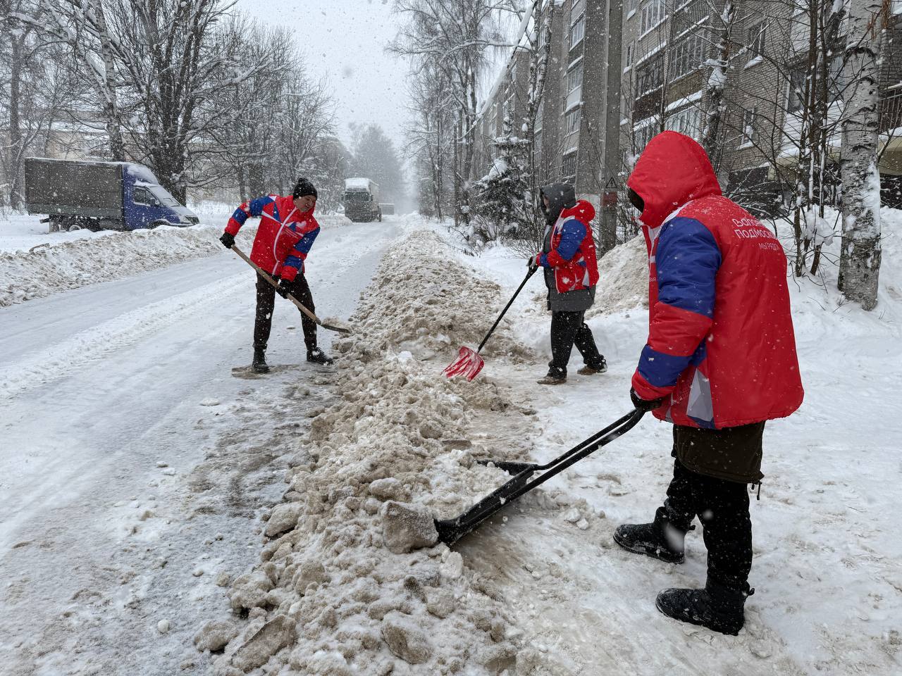 С начала недели силами юных добровольцев были расчищены проходы к социальным объектам на улицах Карла Либкнехта, Стахановской, Краснофлотской, Вознесенской, Хотьковском проезде.