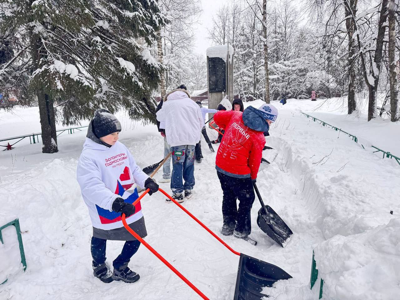 Вчера волонтеры работали во дворе многоквартирного дома на ул. Карла Либкнехта, где расчистили детскую площадку, тротуары, подходы к подъездам. Сегодня «Волонтеры Подмосковья» помогали в уборке территории школы №7 на ул. Вознесенская. Учащиеся 19-й школы на Аллее Славы расчистили памятник рабочим завода №6, погибшим в годы Великой Отечественной войны. Активисты школы №5 г. Хотьково освободили от снега территорию памятника павшим Воинам-землякам. Волонтеры из школы №7 и гимназии №5 регулярно поддерживают чистоту на территориях вокруг своих учебных заведений.