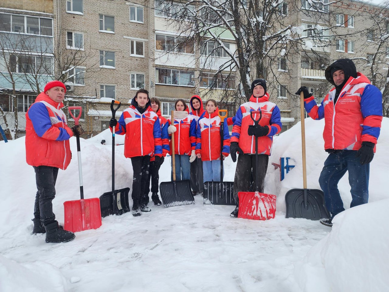 Координатор Анастасия Популова рассказала, что волонтеры каждый день, особенно после сильных снегопадов, помогают с расчисткой дворов многоквартирных домов, школ, социальных объектов и памятников.