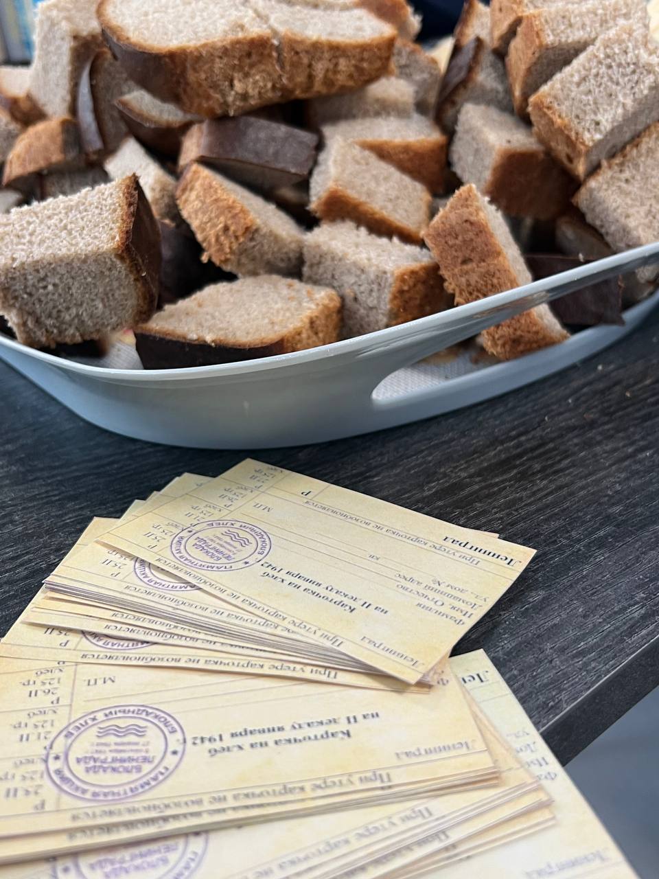 Блокадный хлеб ребята взвешивали и раздавали 125 грамм хлеба, ту самую минимальную норму в сутки.