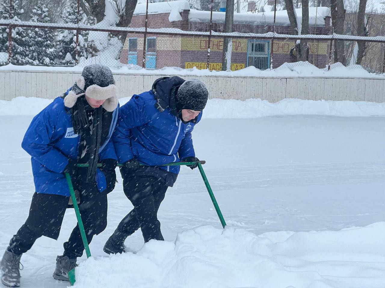 Ребята из волонтёрского отряда Союз Добра дружно взялись за лопаты и почистили подходы к магазину, остановку, а также игровую и хоккейную площадки.