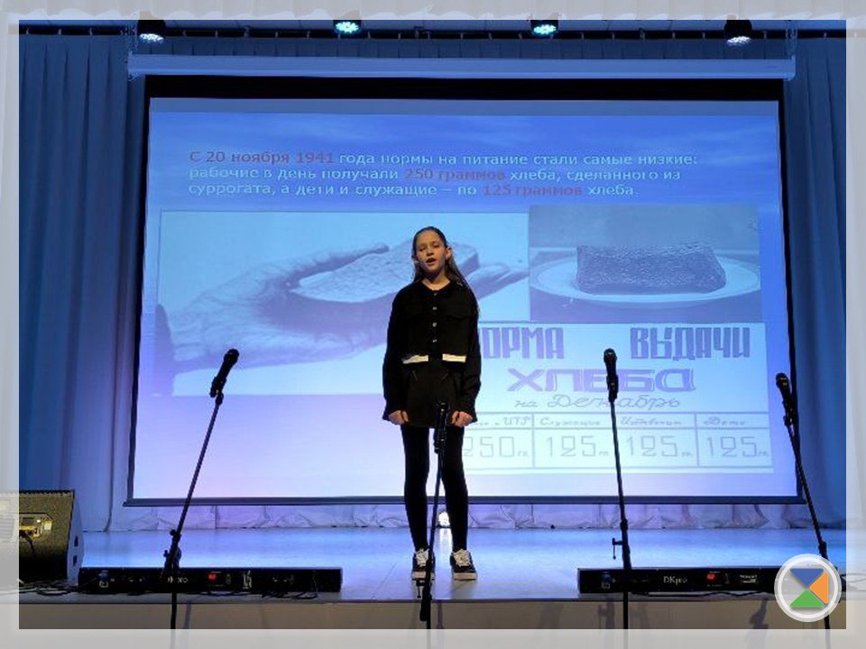 На сцене ожили эпизоды жизни осаждённого Ленинграда. Звучали пронзительные строки из дневников блокадников, в том числе Гали Зимницкой, и стихи, ставшие символом стойкости.