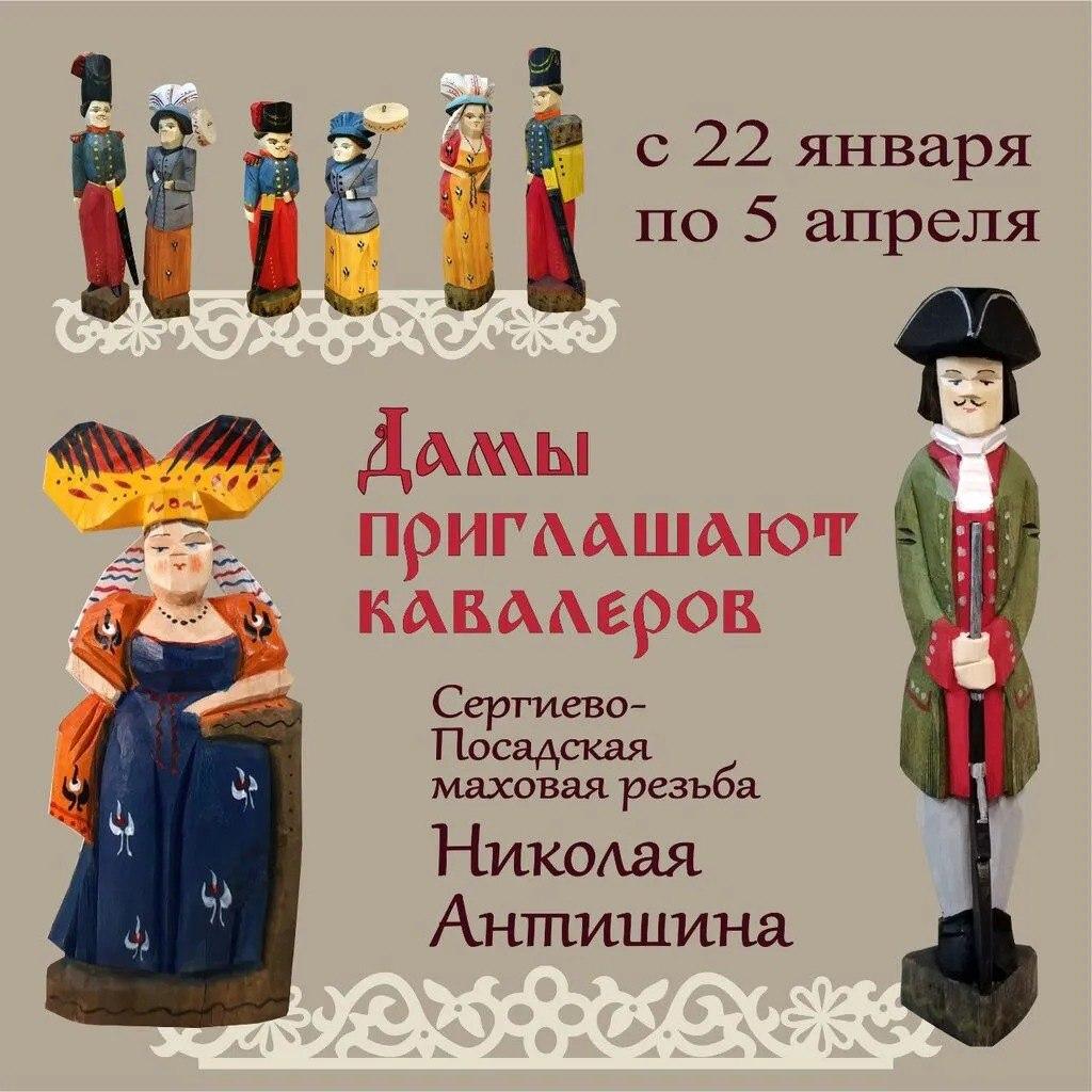 Выставка резной игрушки открылась в Раменском музее. Мастер Николай Антишин представит на ней свои работы в традициях Сергиево-Посадской маховой резьбы. Называется она Дамы приглашают кавалеров. Организаторы поделились: Деревянные сударыни принарядились и вышли погулять - других посмотреть, себя показать. Их ждут бравые гусары, лоточники с товарами, яркие лошадки и даже... барабанщики. И вся эта пестрая, весёлая, яркая компания уже ждёт посетителей в нашем музее. Выставку можно увидеть по 4 апреля. 12+.