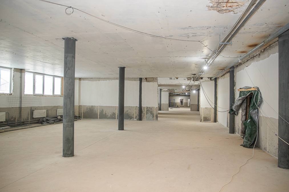В здании уже завершили все внутренние демонтажные работы, сделали мягкую кровлю, возвели перегородки, смонтировали отопление и пожарный водопровод. Сейчас подрядчик работает в подвальной части, обустраивает канализацию и демонтирует старые фасады. На площадке задействовано 75 человек.