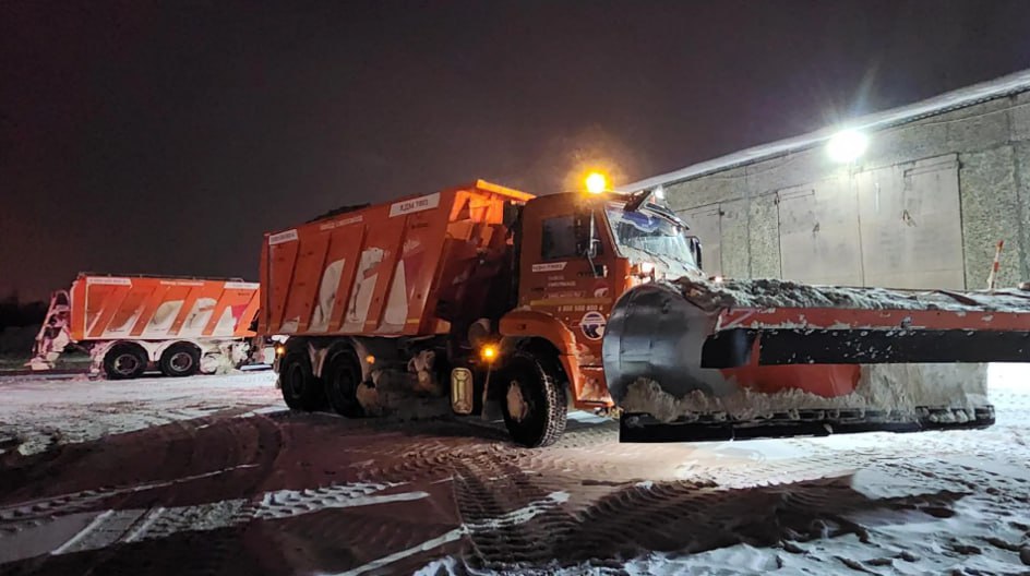 Волоколамские дорожники вышли на ночную уборку заснеженных дорог
