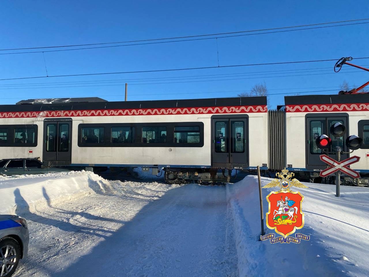 Полиция выясняет обстоятельства ДТП на железнодорожном переезде в городском округе Пушкинский.