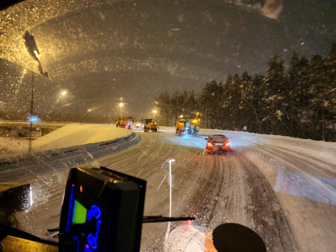 Колонна в составе четырёх машин и одного автогрейдера начинает ночной маршрут с окраин. Техника приводит в порядок дороги в деревне Слащёво, посёлках Сынково, МИС и Молодёжном. После этого машины отправляются в микрорайон Климовск, а затем — на крупные городские улицы Орджоникидзе и Комсомольскую.