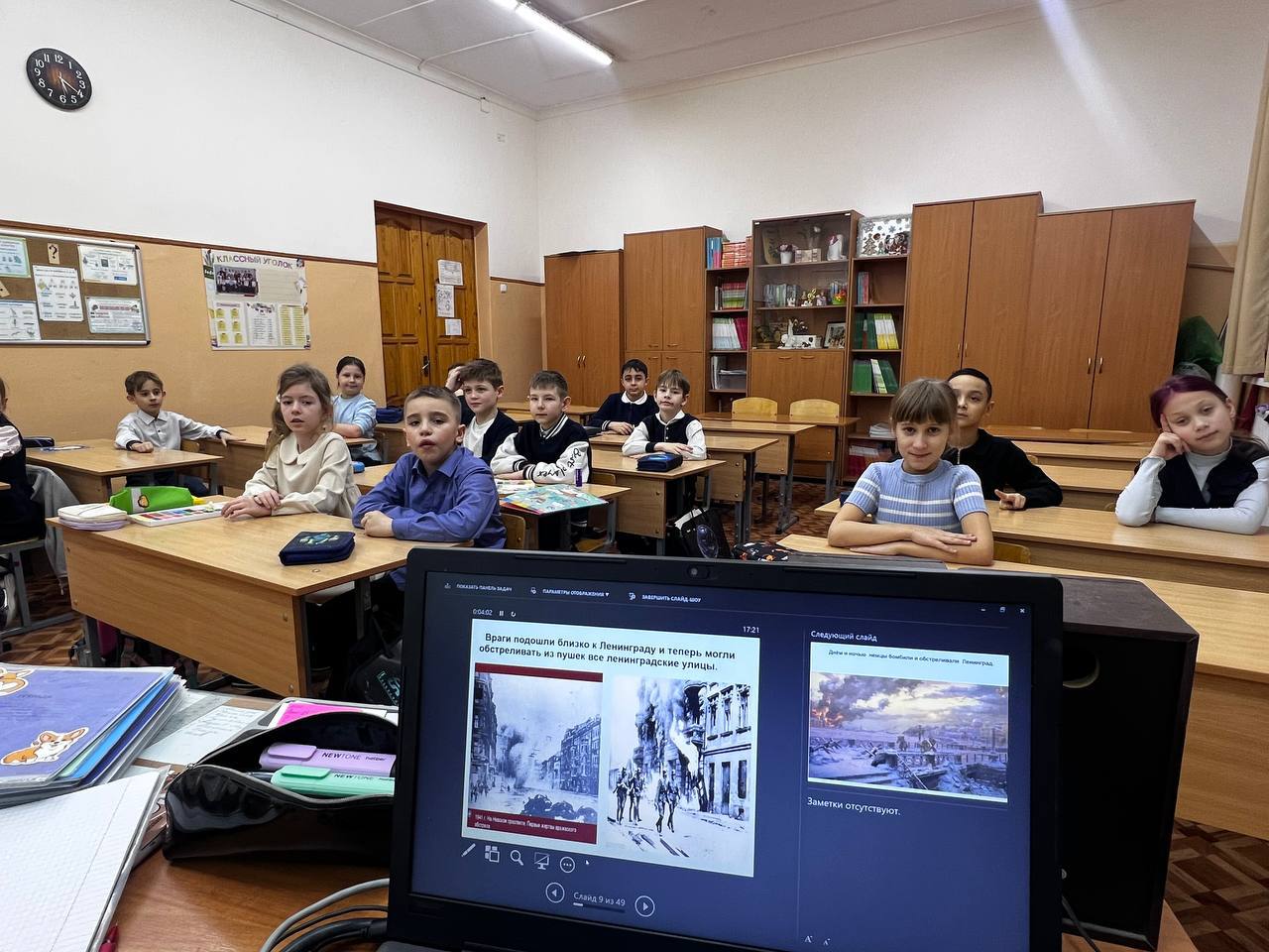 Сегодня, 27 января, ученики 3б класса МБОУ лицея 4 провели тематический классный час, посвященный одной из важнейших дат отечественной истории — Дню полного освобождения Ленинграда от фашистской блокады