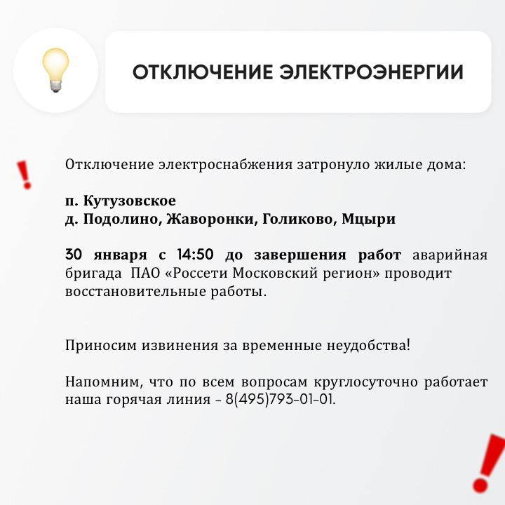 Информацию о работе ресурсоснабжающей организации можно получить по номеру горячей линии: +7 495-793-01-01.