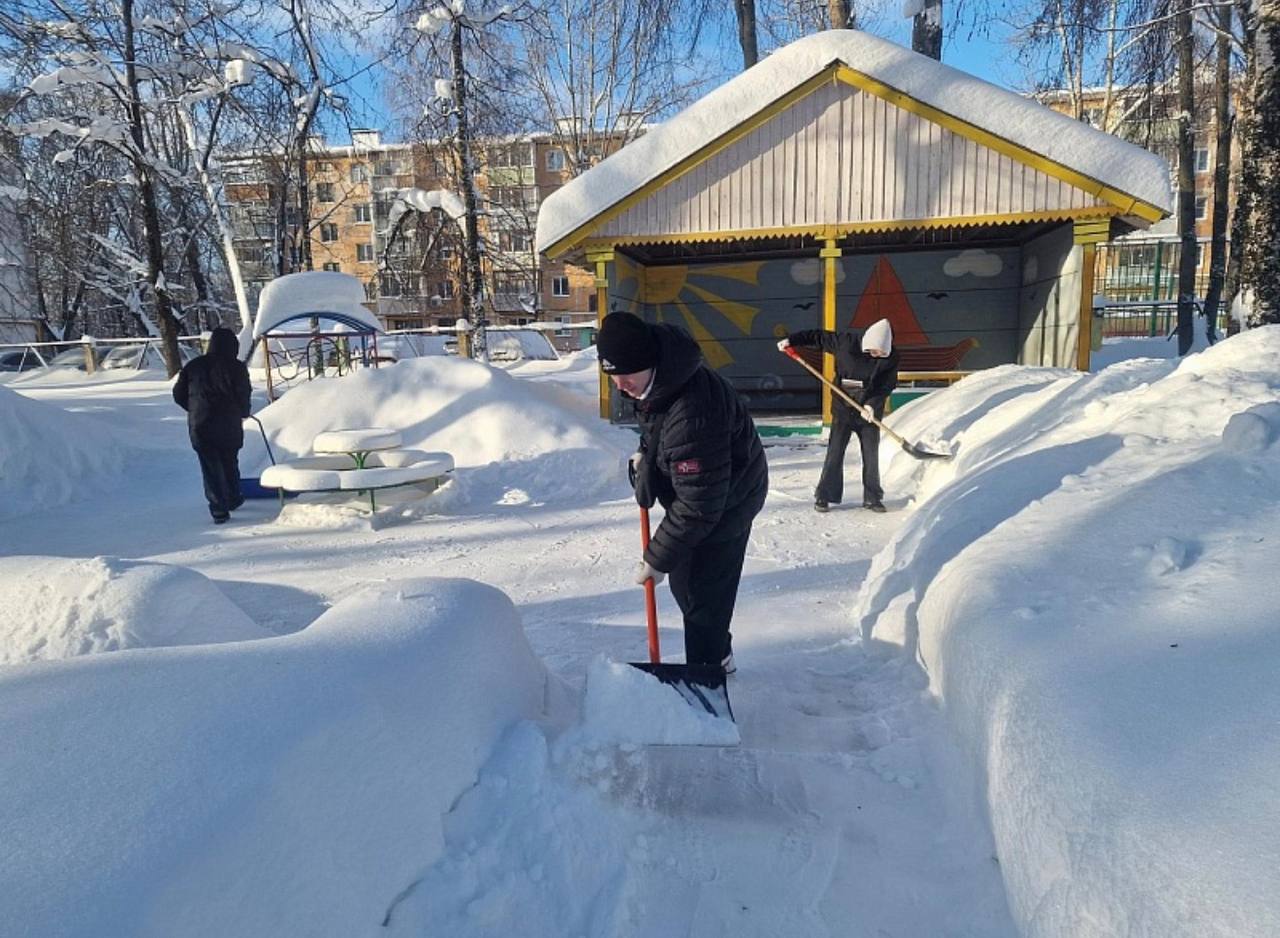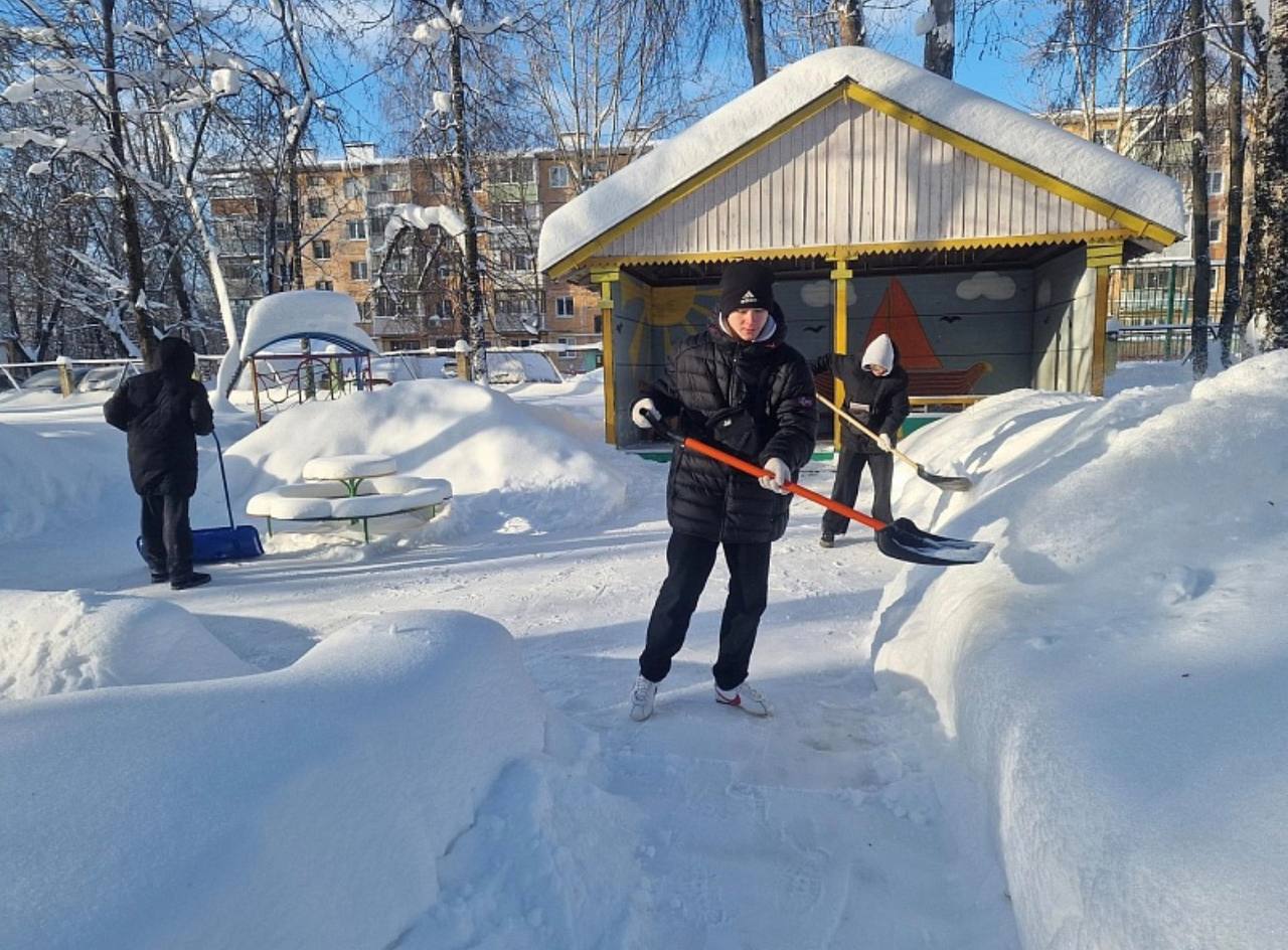 Студенты Воскресенского колледжа из структурного подразделения №2 расчистили территории детских садов «Снежок» и «Снежинка» в микрорайоне Москворецкий