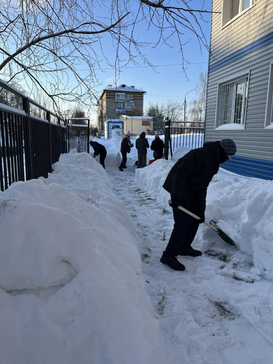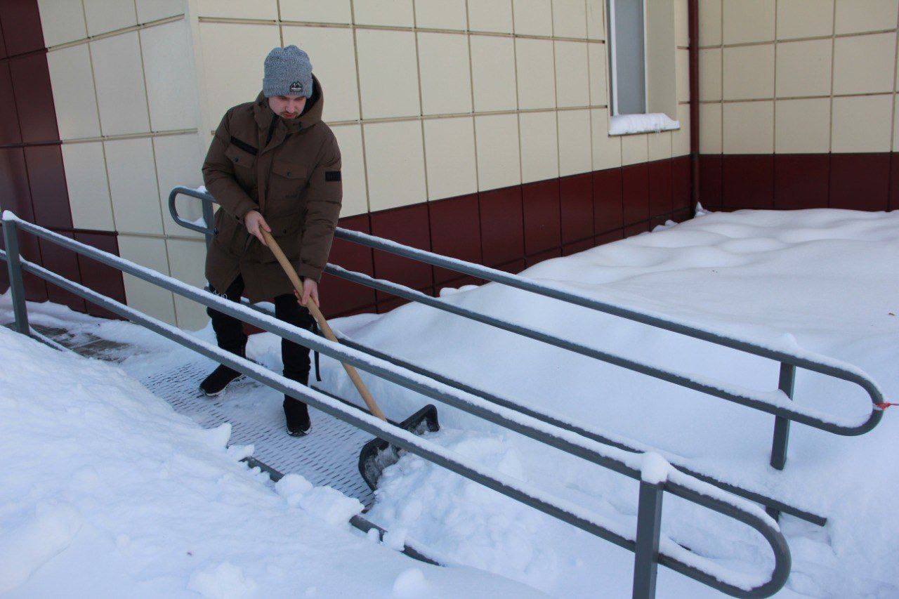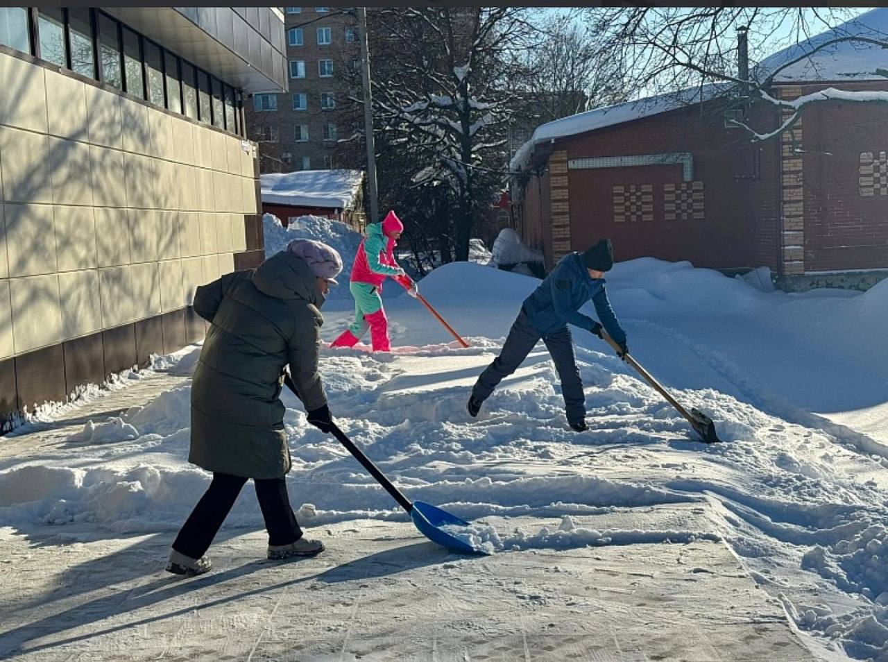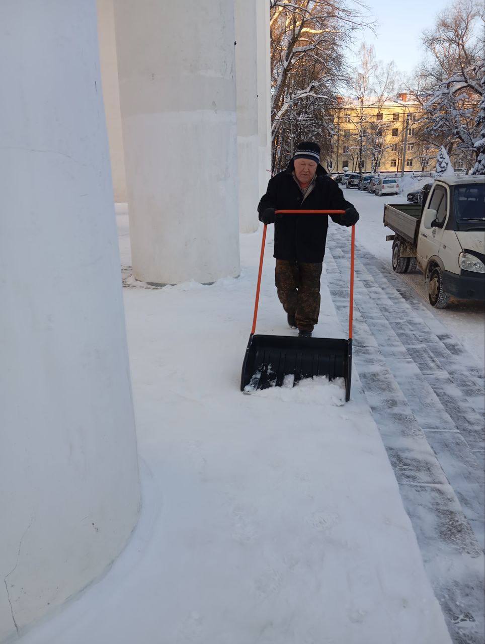 Слаженно и продуктивно сотрудники очистили от снега и льда входные группы, лестницы и пешеходные дорожки вокруг подведомственных зданий.